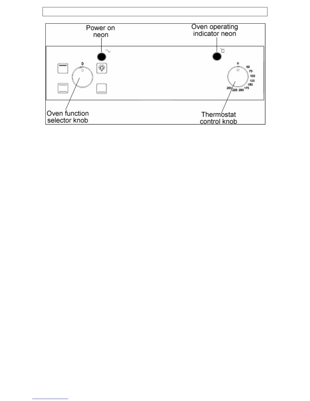 The oven function selector knob should be used to select the particular