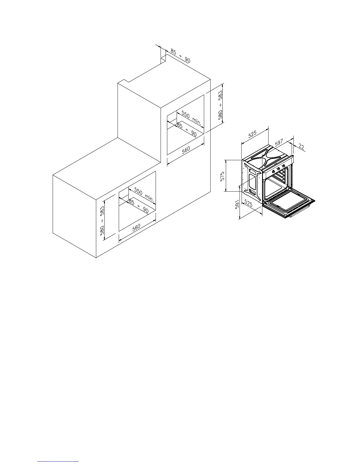 Fig. 2: Installation distances for 60cm wide single electric ovens