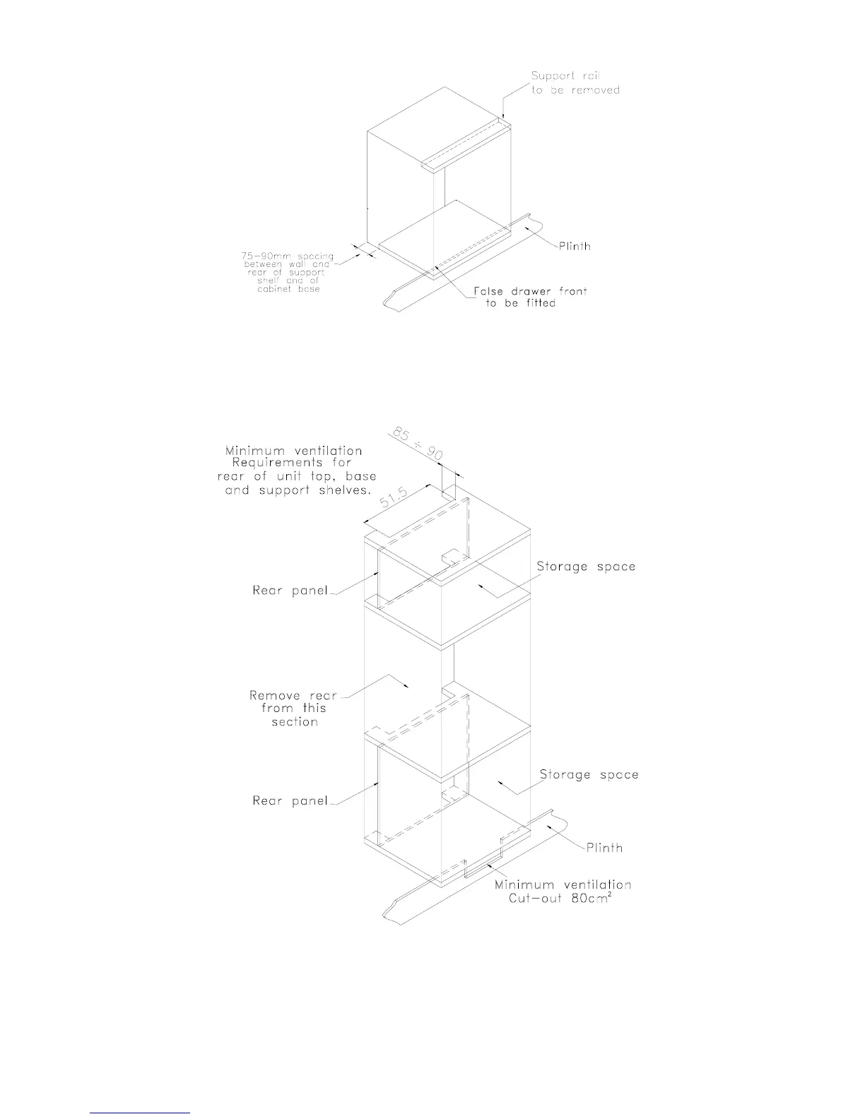 Fig. 3: Ventilation and cut-out requirements for installation of a