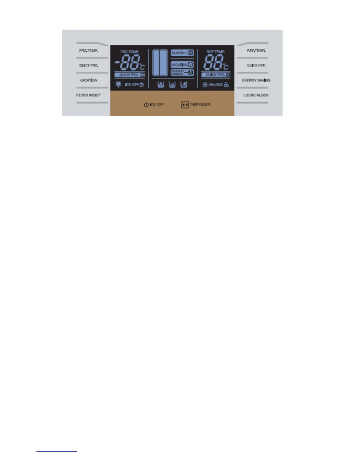 o Press the ‘REF TEMP’ button once and the refrigerator icon will