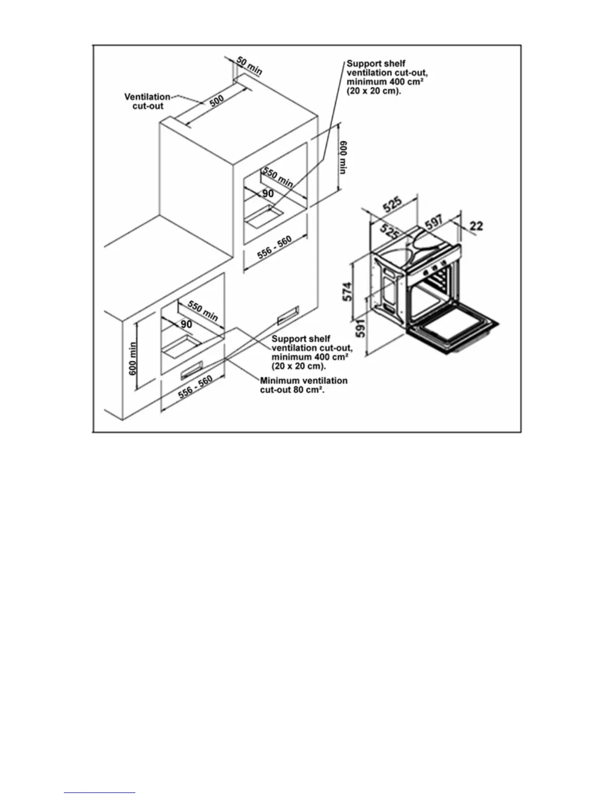 o A 400 cm² (20 x 20 cm) ventilation cut out must be made in the