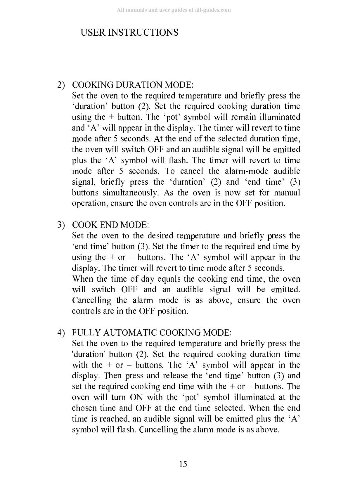 signal, briefly press the ‘duration’ (2) and ‘end time’ (3)