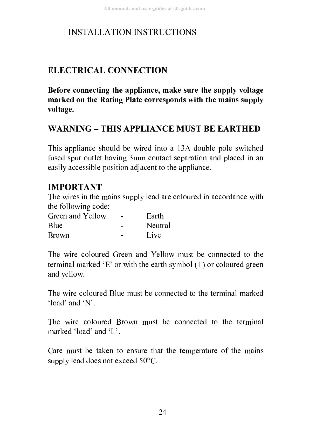 This appliance should be wired into a 13A double pole switched