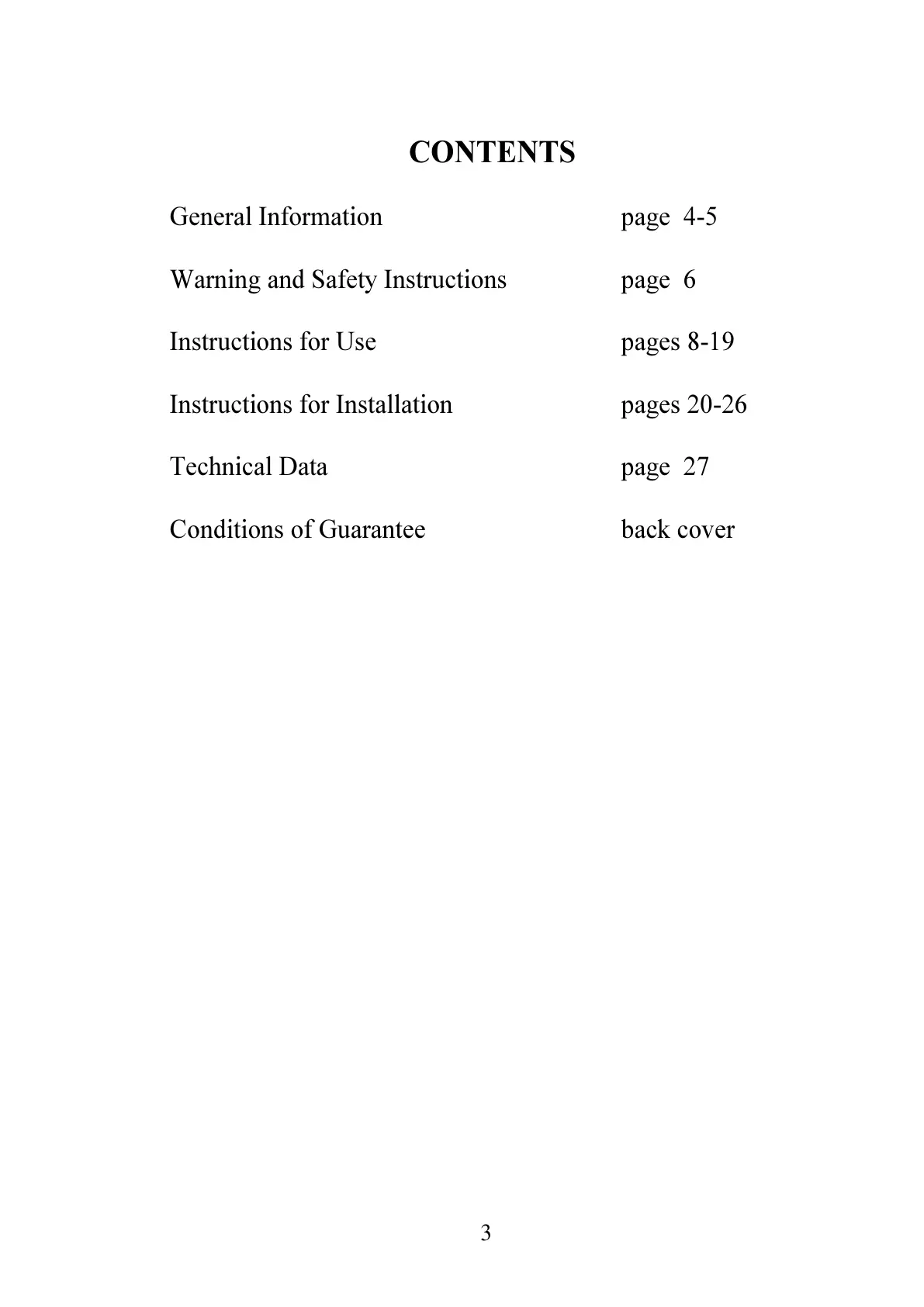 Conditions of Guarantee back cover