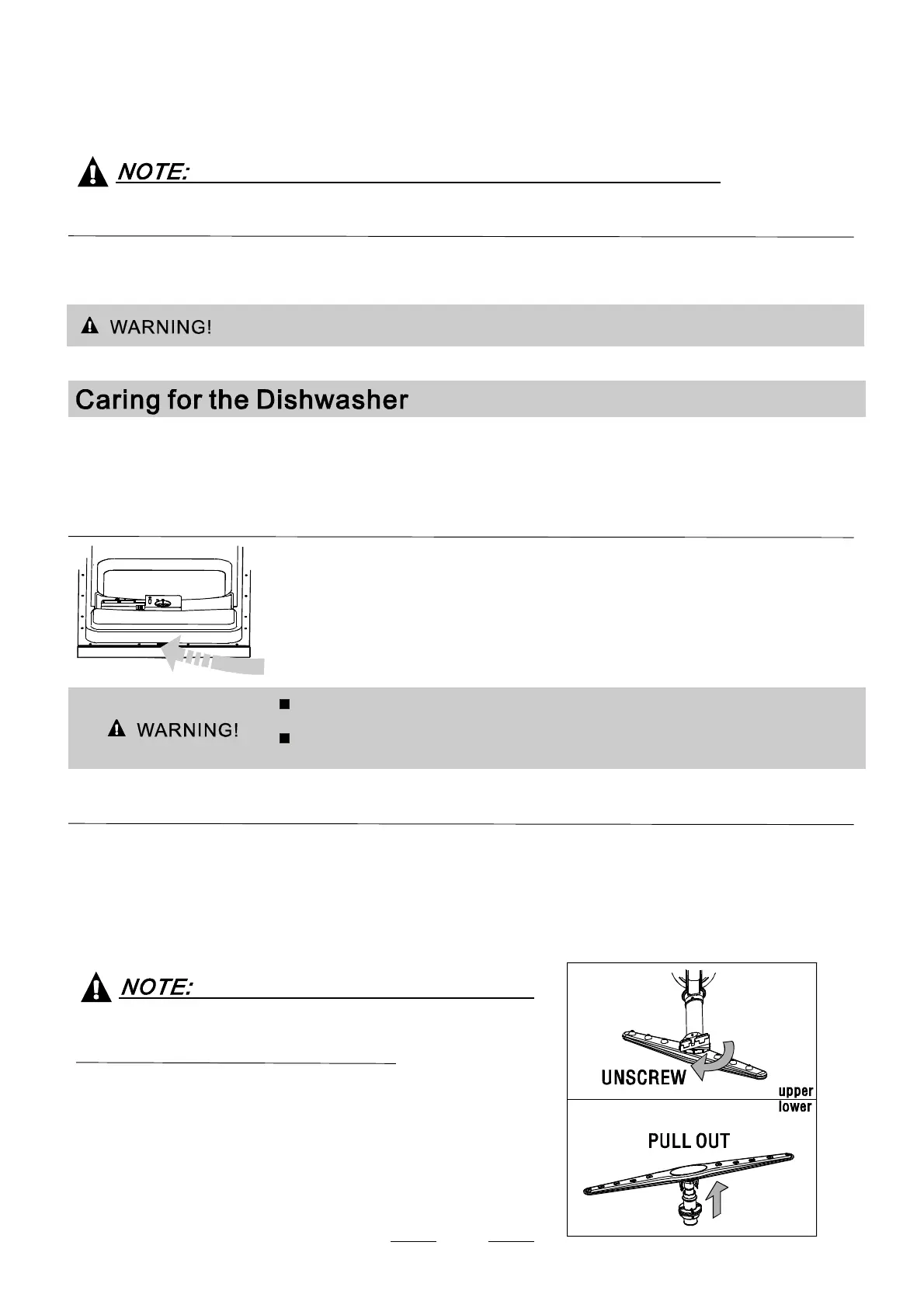 1.Cut off the electrical power to the dishwasher.