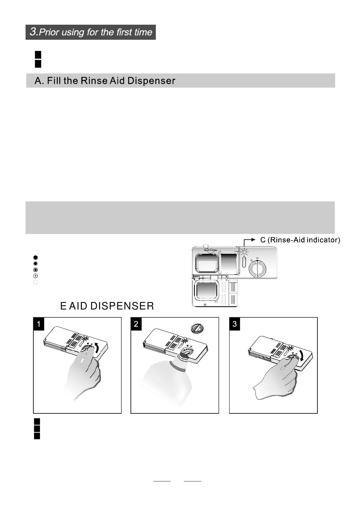 indicat or " C" l ocat ed n ext t o the ca p. Wh en the ri nse- ai d c ontainer is fu ll, th e who le indica to r w ill be d ark . As t he