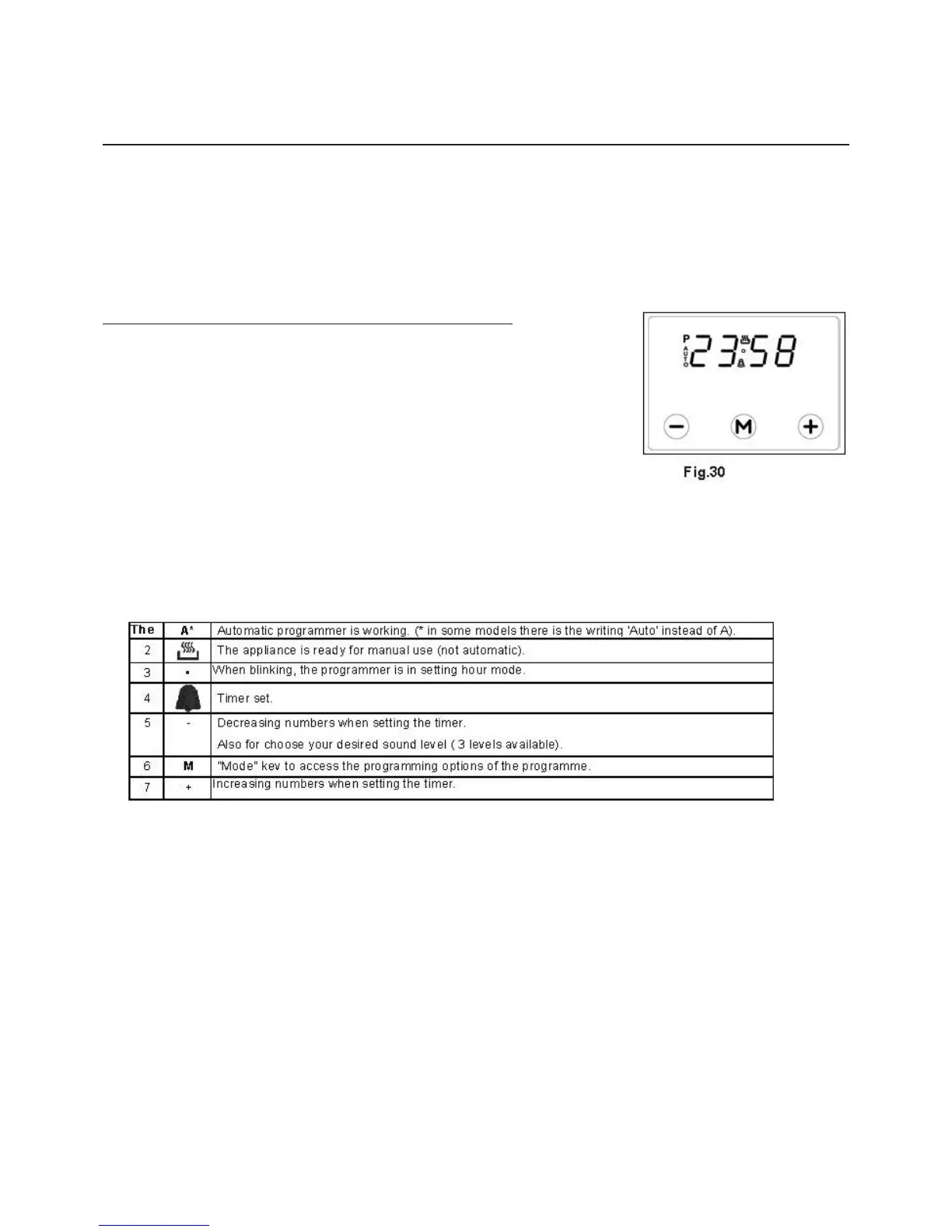 • To set the hour and/or to enable the appliance to operate press the M key for