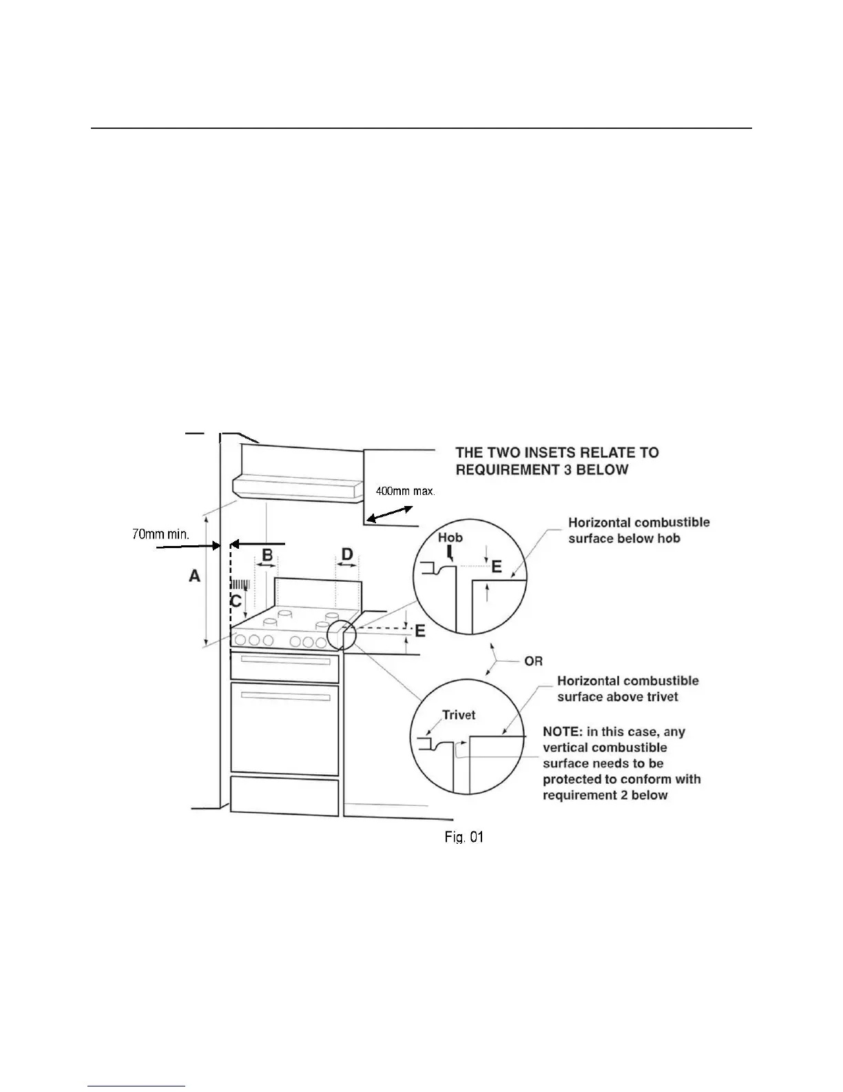 in no case shall the clearance between the highest part of the hob of the cooking appliance and a range hood