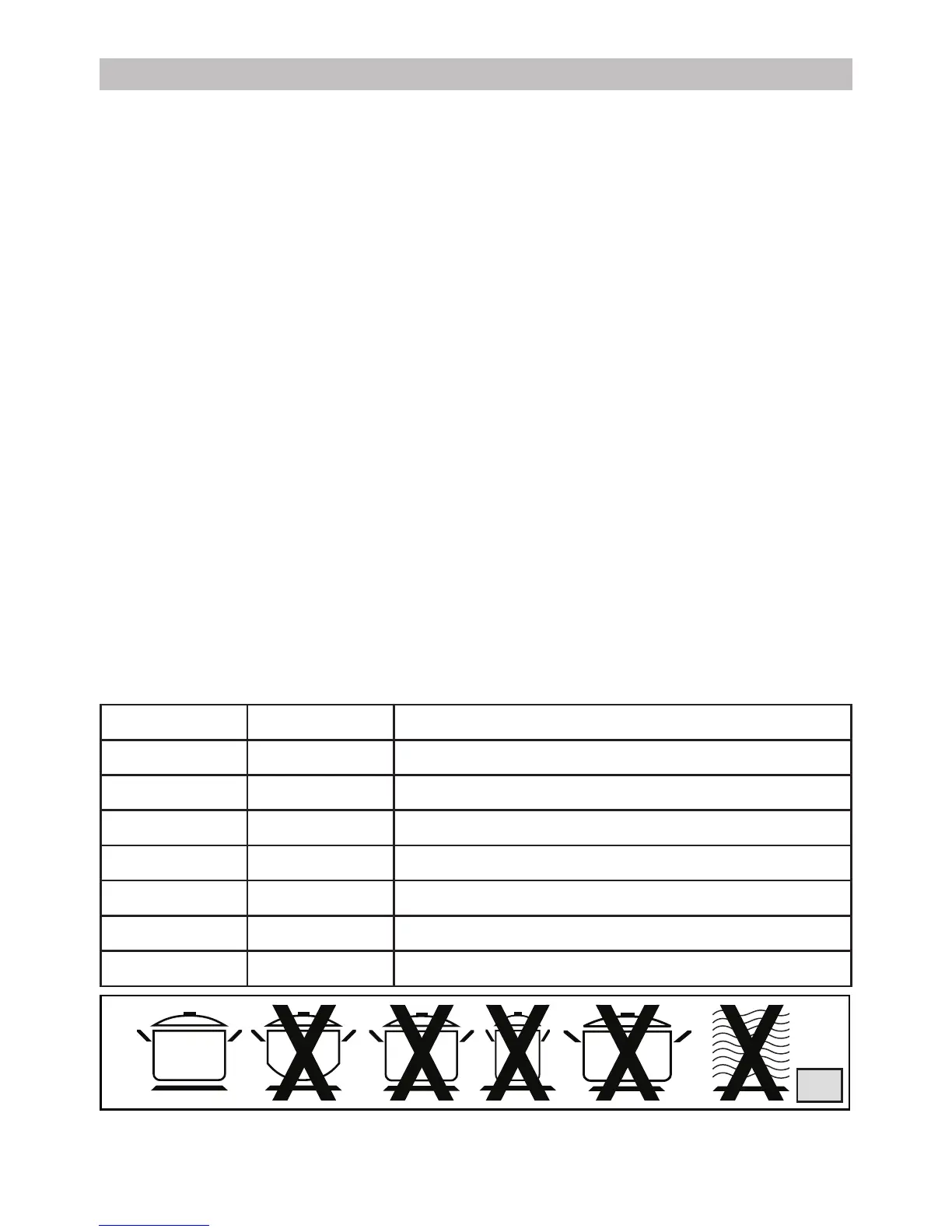 • Do not use pans with aluminum bottom.