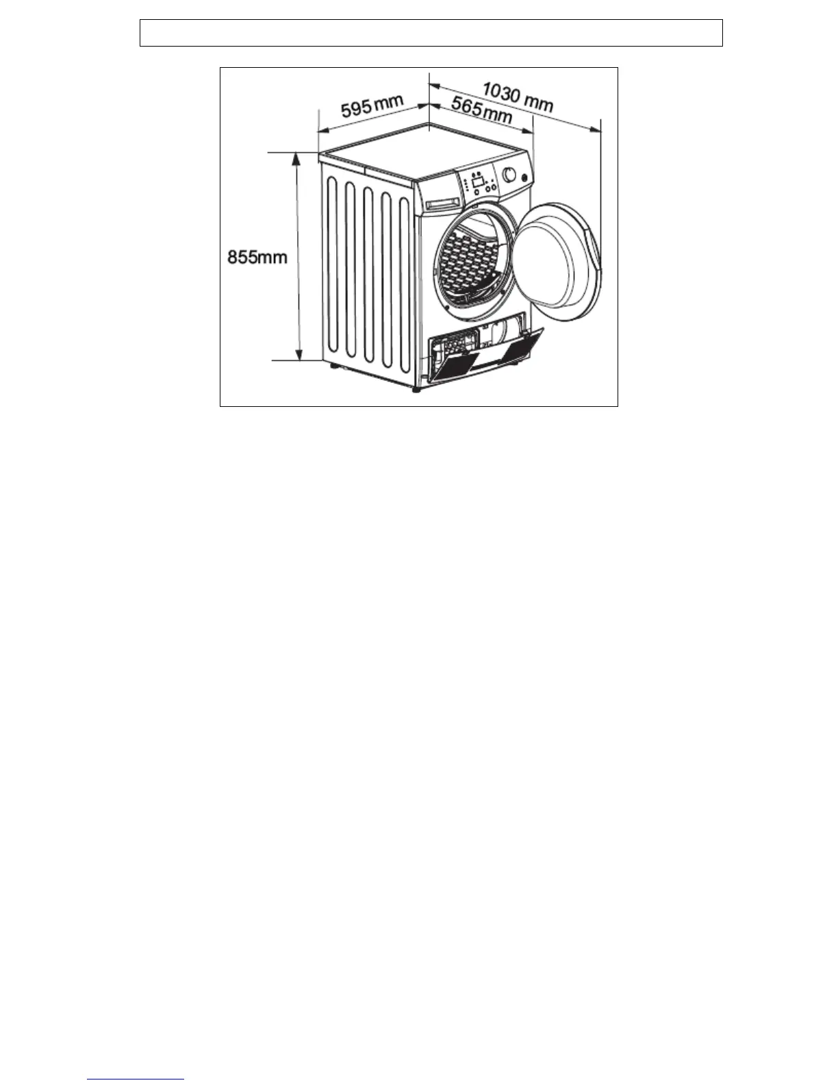 Depth: 565 mm / 1030 mm (door open)