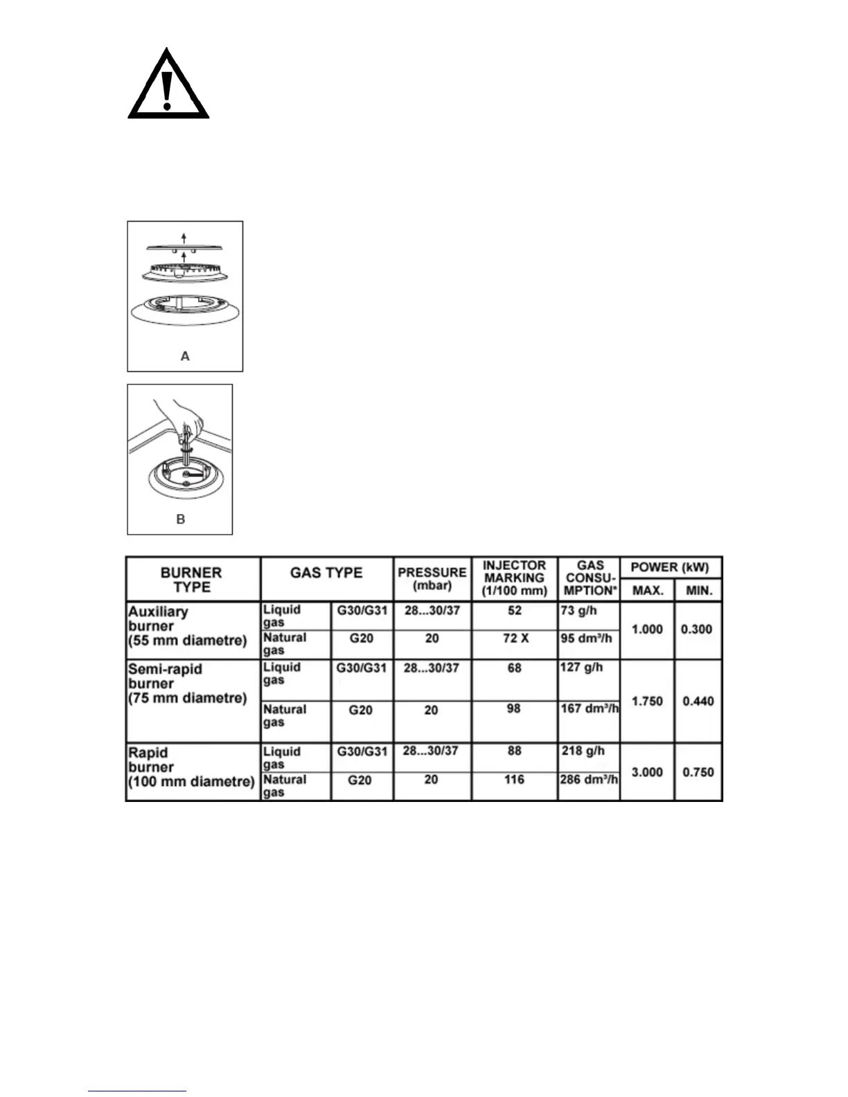Gas adjustment (Conversion to LPG for the hob top)