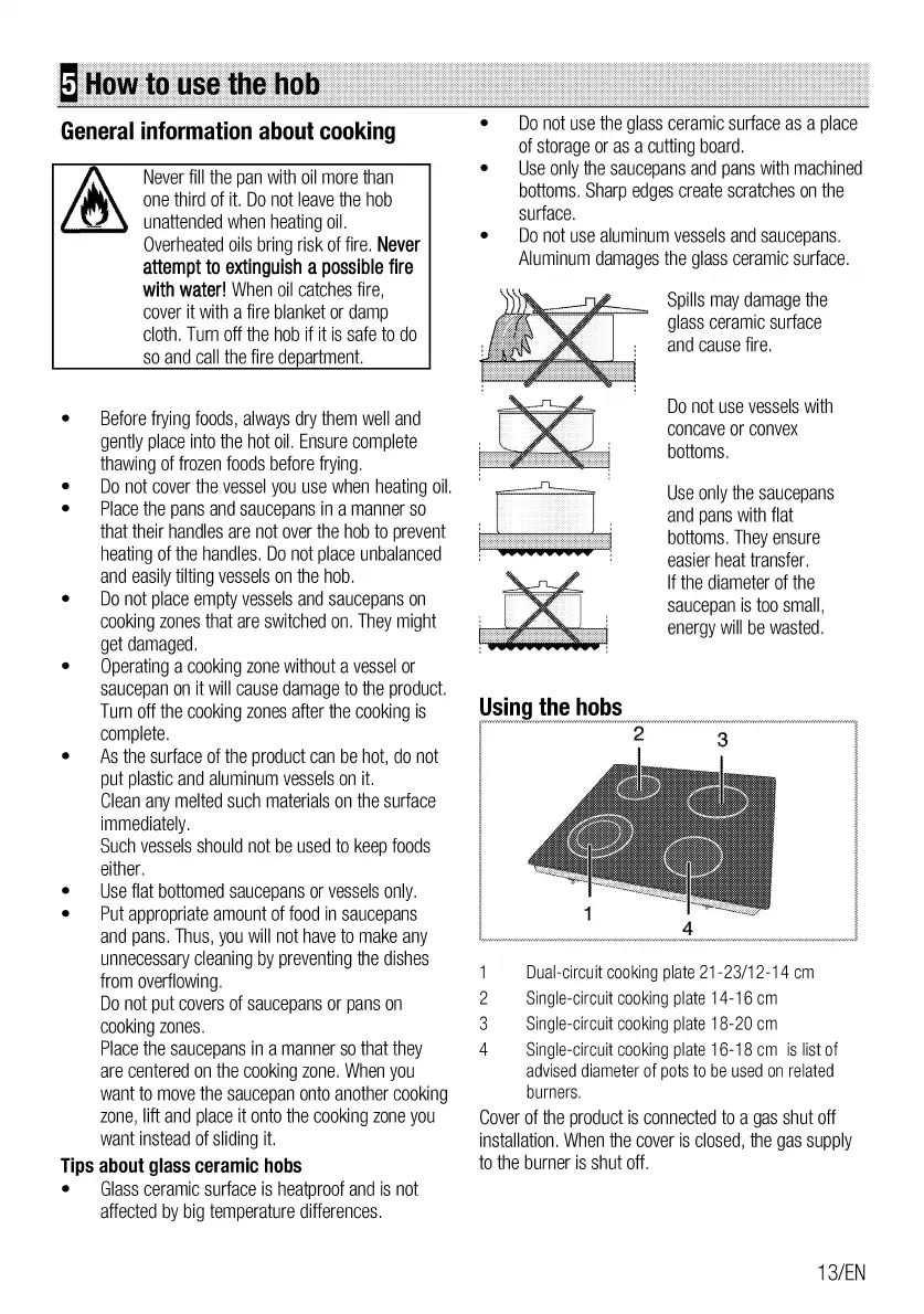 Baumatic BCT4 - Hob Operation Guide; General Cooking Procedures; Glass Ceramic Hob Care Tips