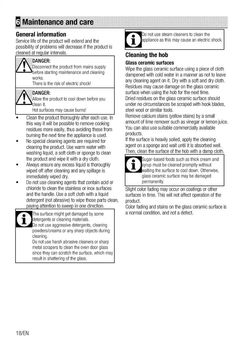 Baumatic BCT4 - Maintenance and Cleaning; General Cleaning Recommendations; Glass Ceramic Hob Surface Cleaning