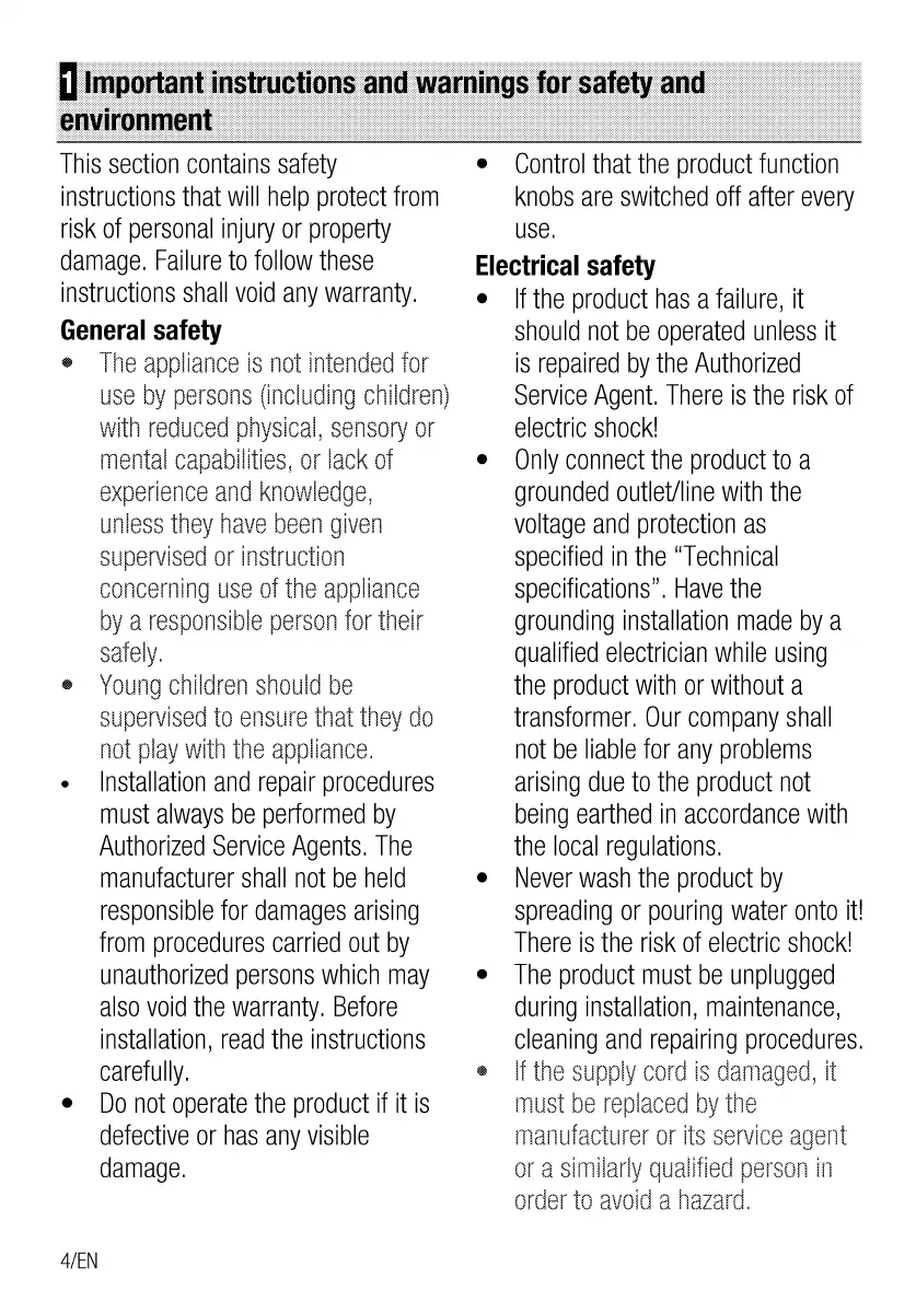 Baumatic BCT4 - Important Safety and Environmental Instructions; General Safety Precautions; Electrical Safety Guidelines