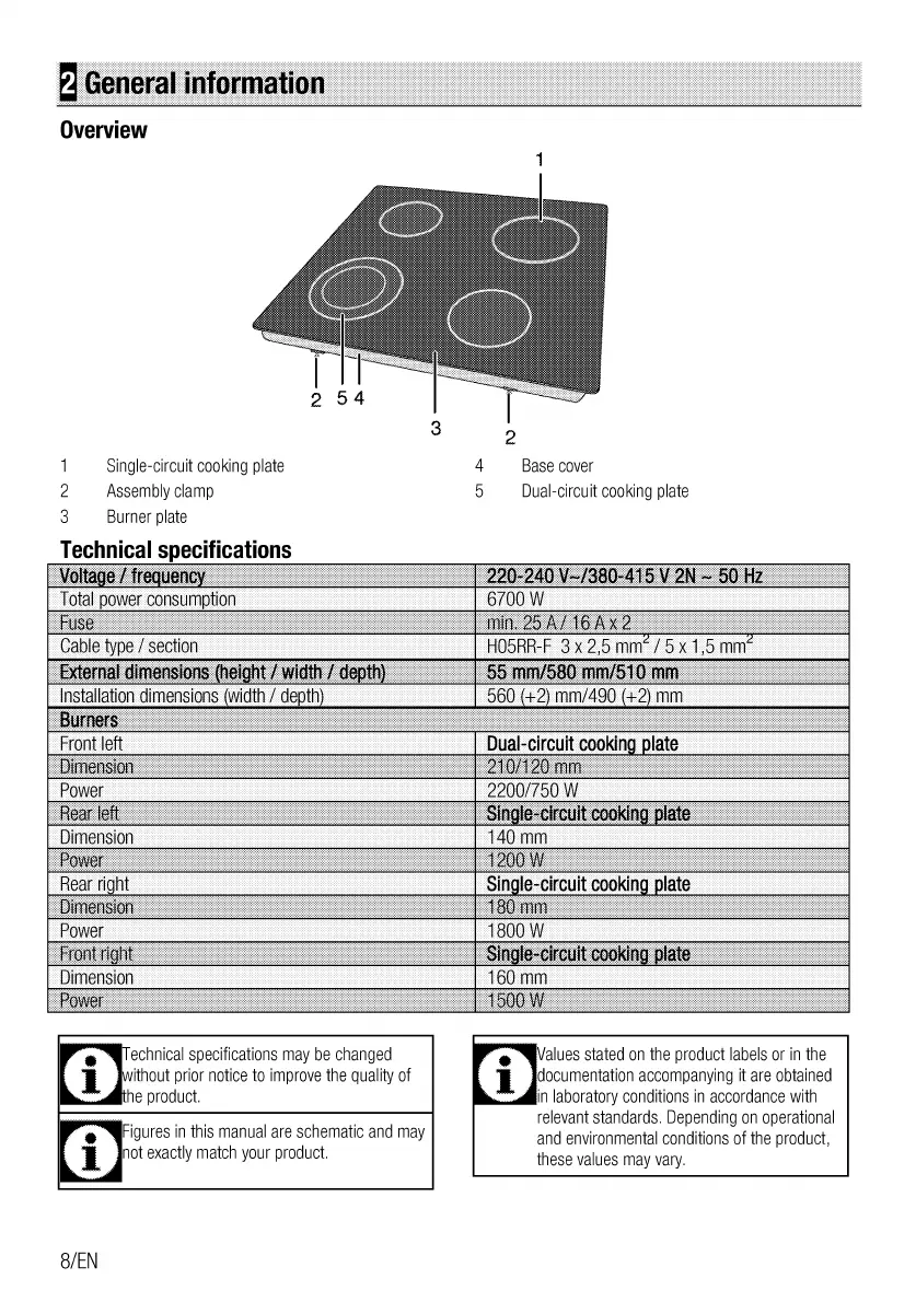 Baumatic BCT4 - General Product Information; Hob Component Overview; Technical Specifications