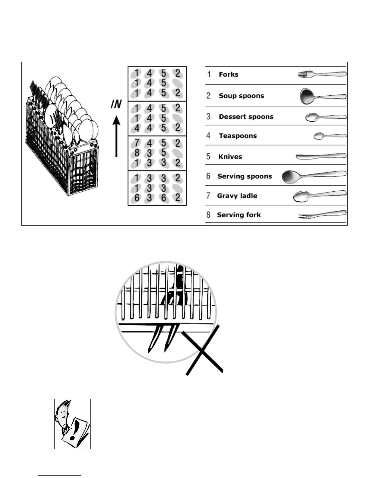 Cutlery should be placed inside of the cutlery basket. The cutlery