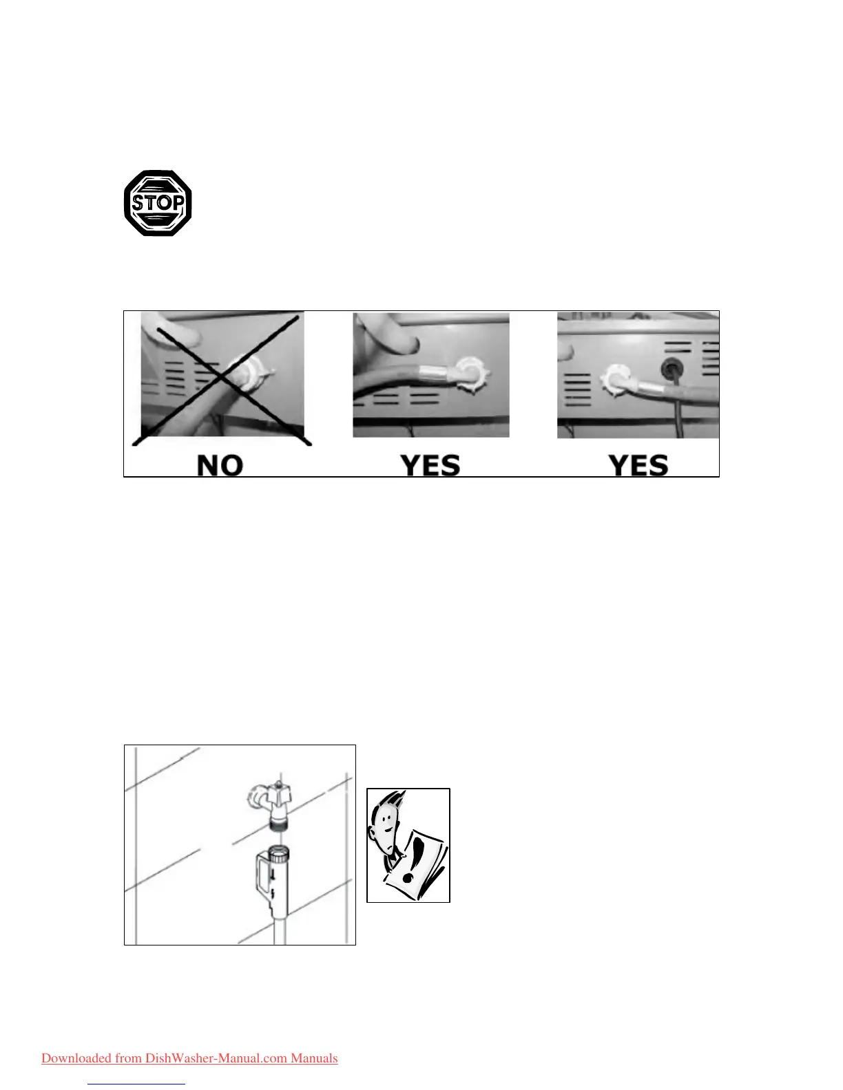 o Fully tighten the inlet hose to the water tap and the dishwasher.