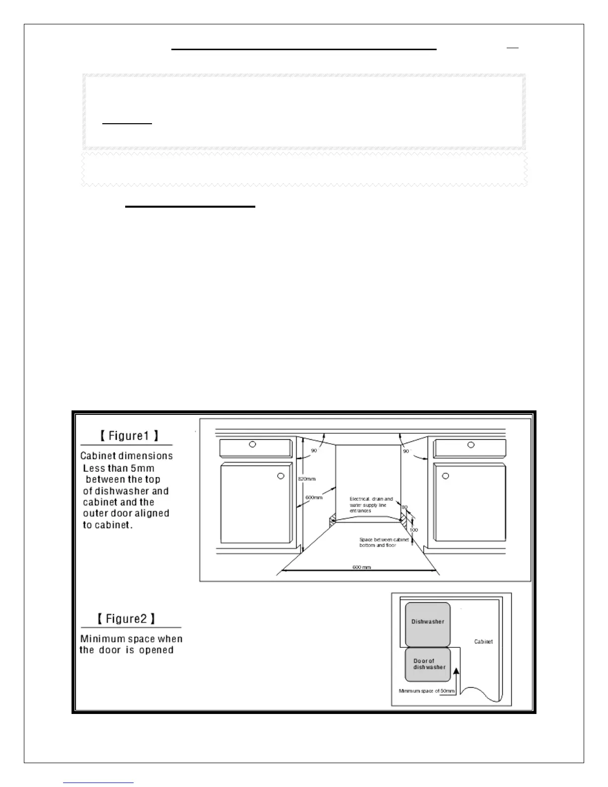 • If dishwasher is to be installed at the corner of cabinet