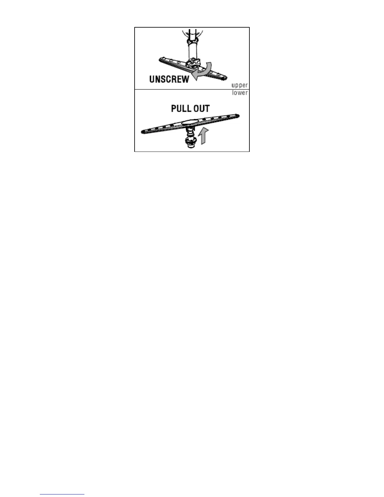 o Gently pull upwards to remove the lower spray arm.