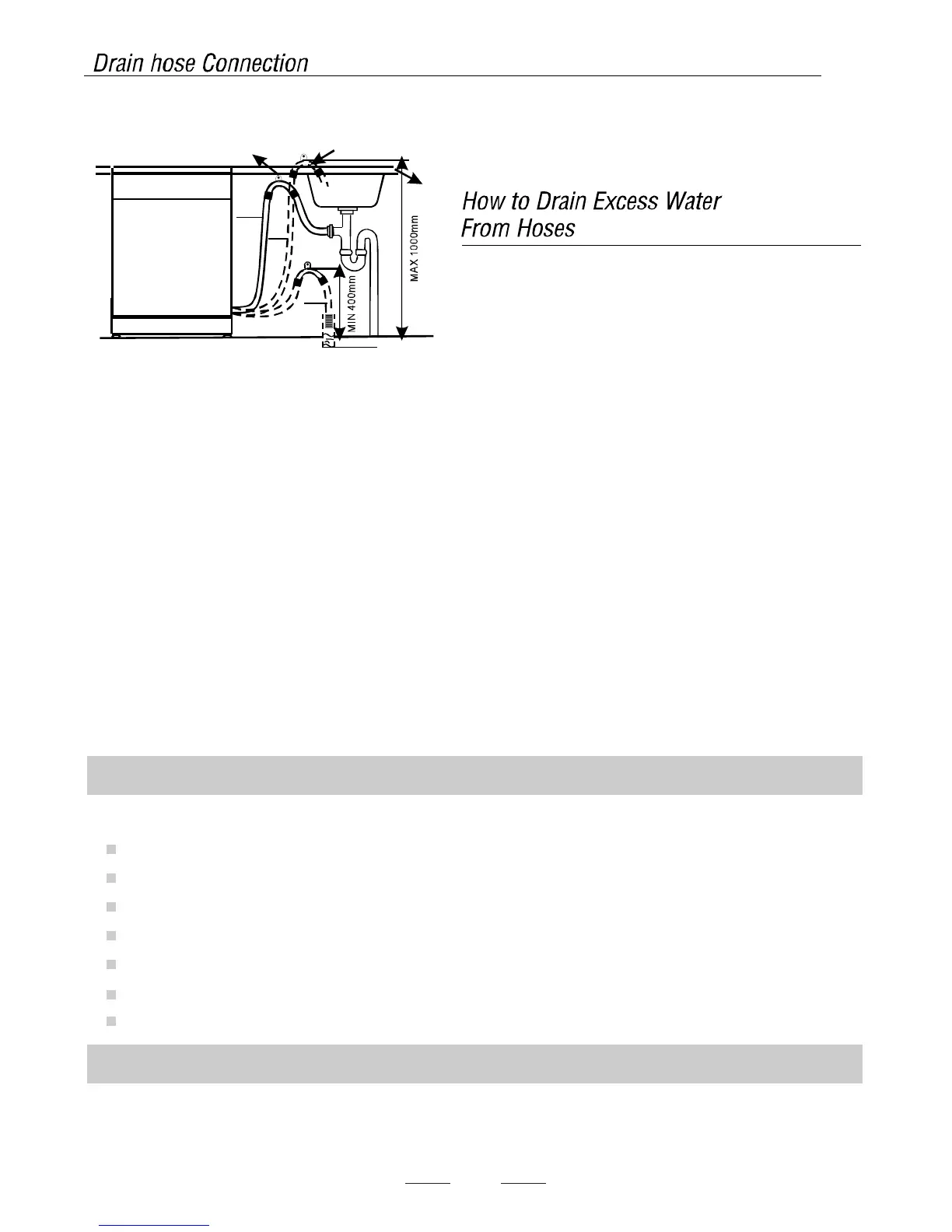 from the bottom of the dish. The water drain hose should be fixed by a hose clip.Thefreeendof