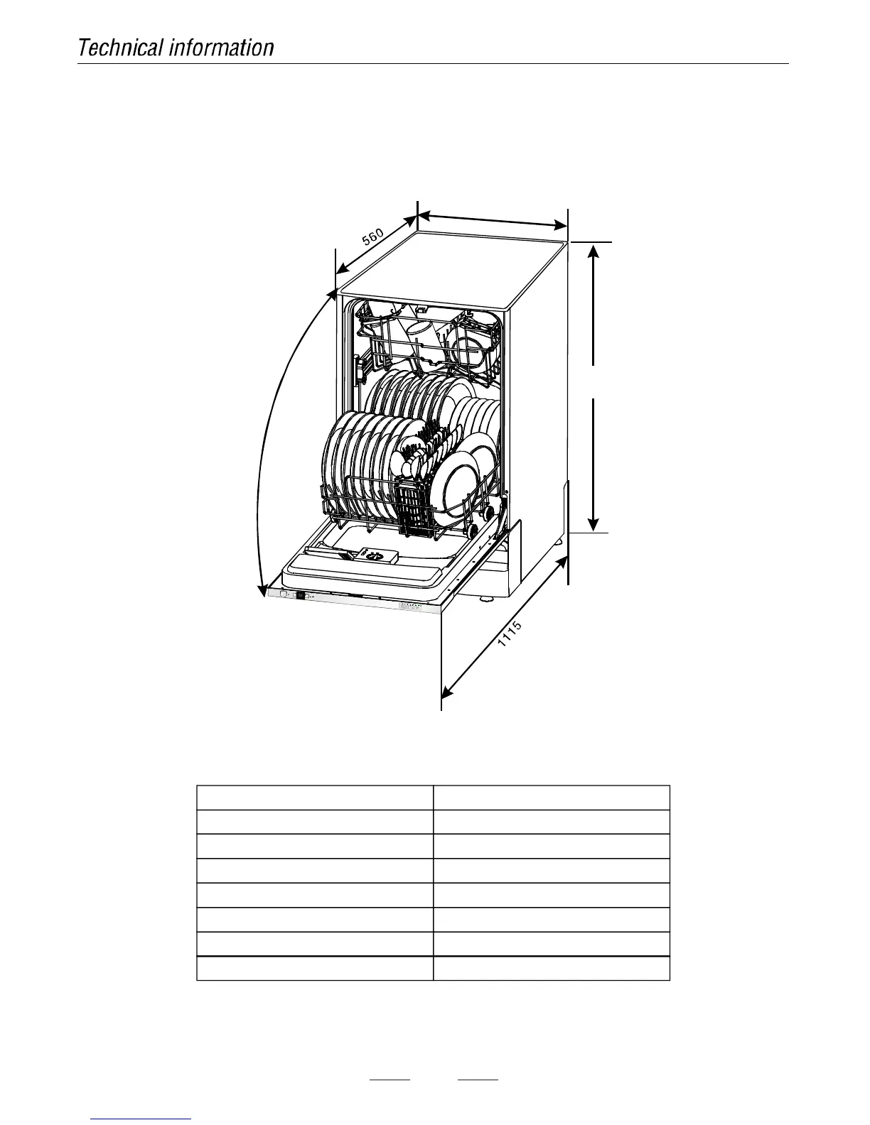 Capacity: 9 Place settings