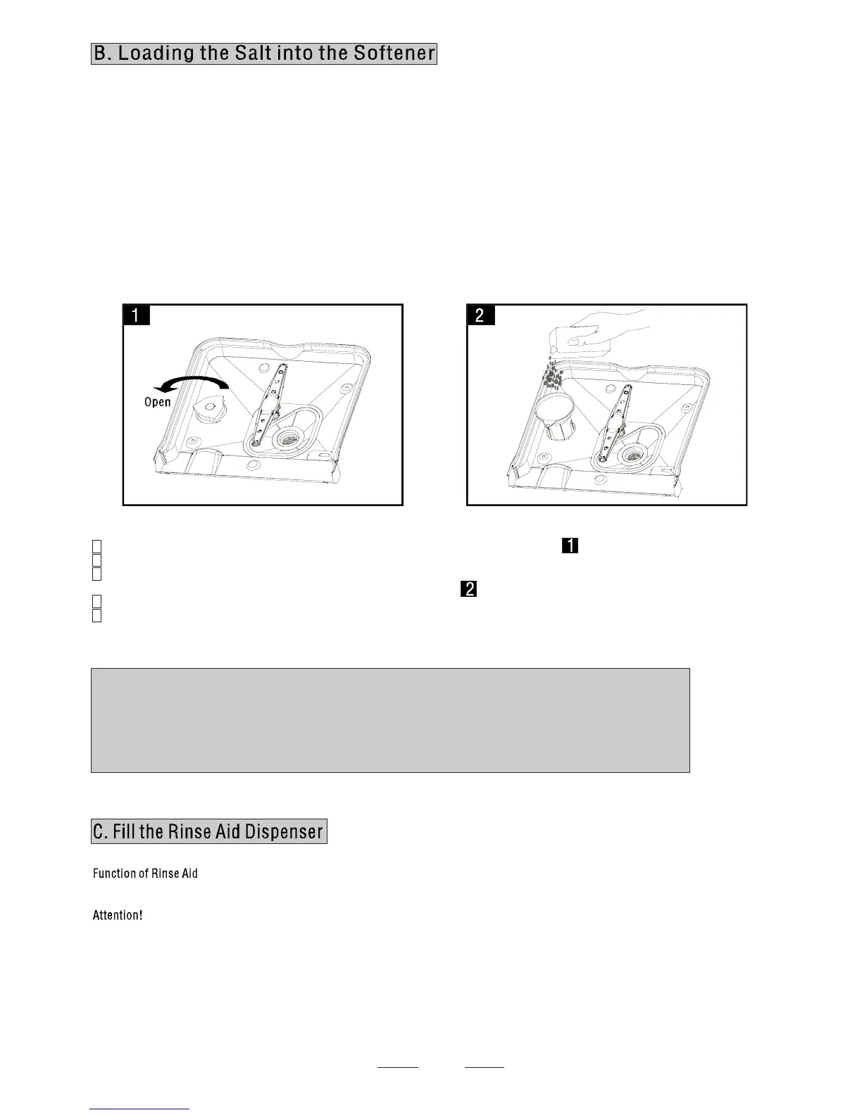 If there is no salt warning light in the control panel (for some models) , you canjudge when to load