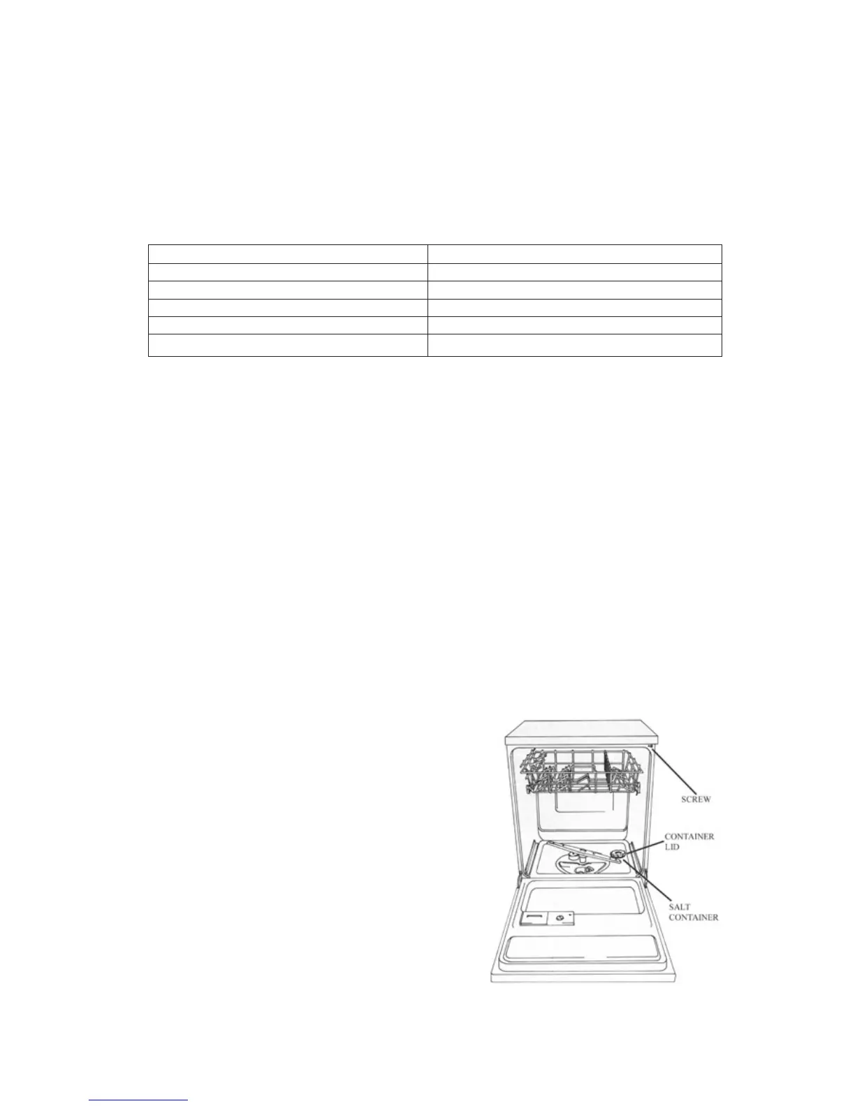 • The need for salt is indicated through the top of the salt container cap, when salt is required the