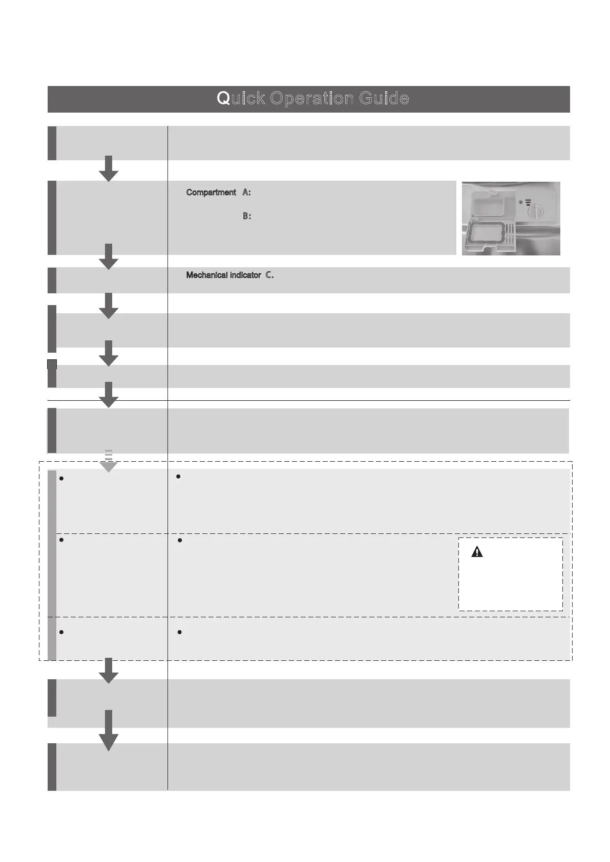 Warning: wait a few minutes (about 15 minutes) before unloading the dishwasher to avoid scald,as
