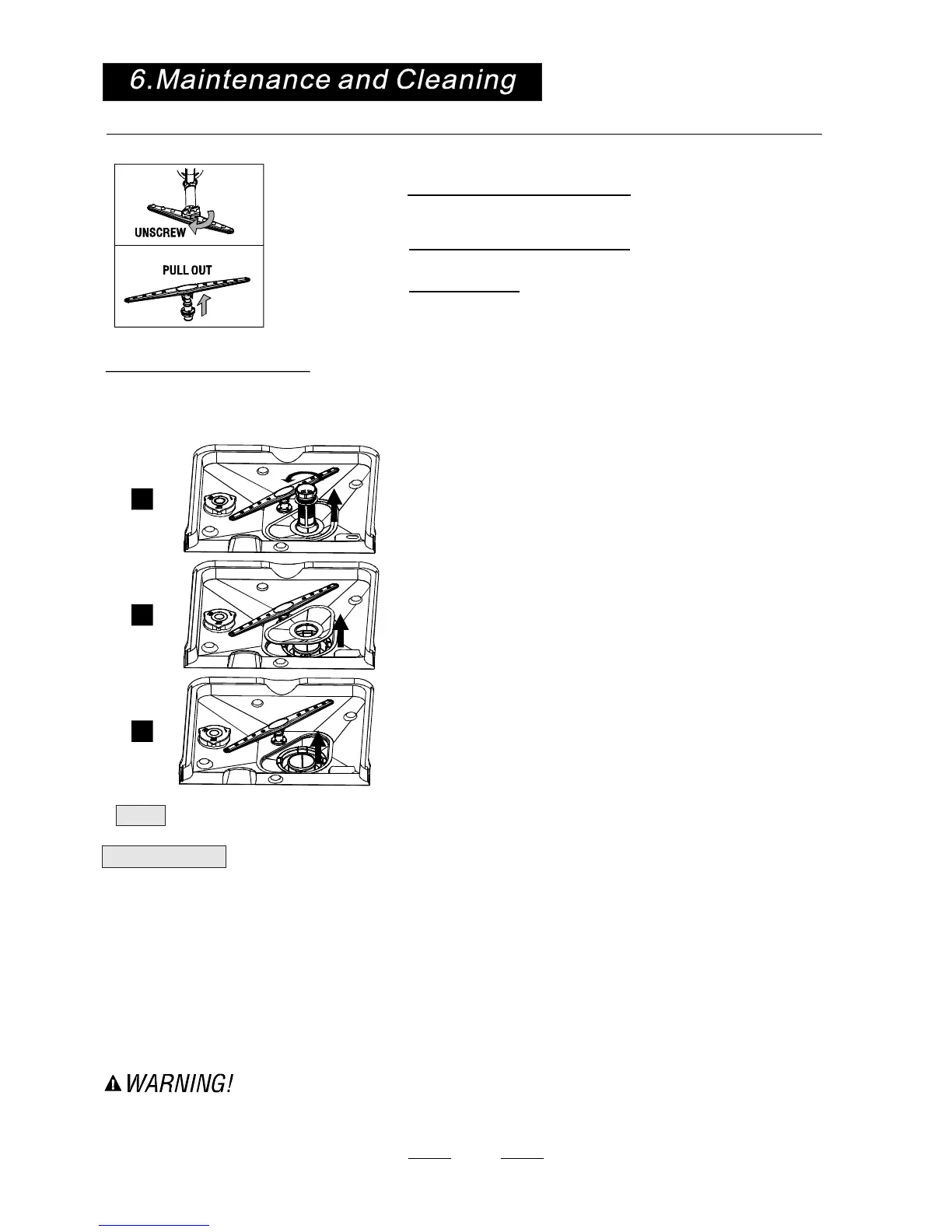 It is necessary to clean the spray arms regularly for hard water chemicals will clog the spray arm jets and bearings.