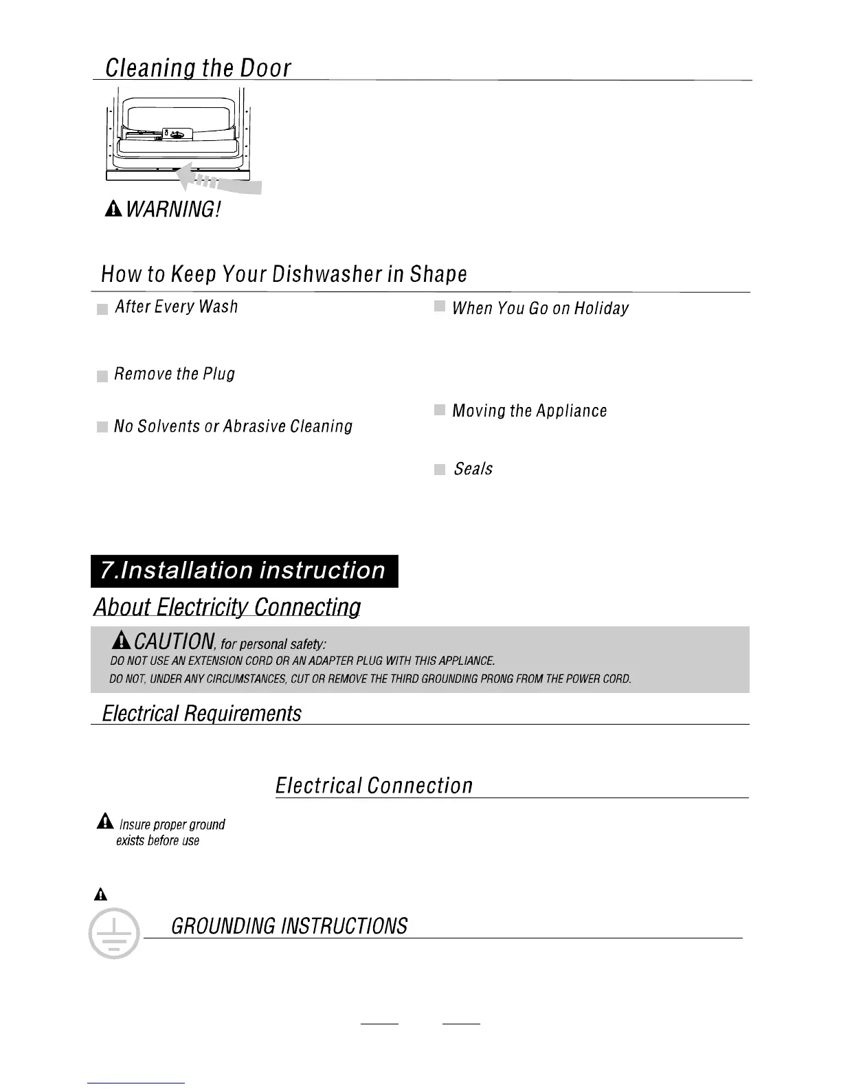 Please see the rating label to know the rating voltage and connect the dishwasher to appropriate power supply, which has a