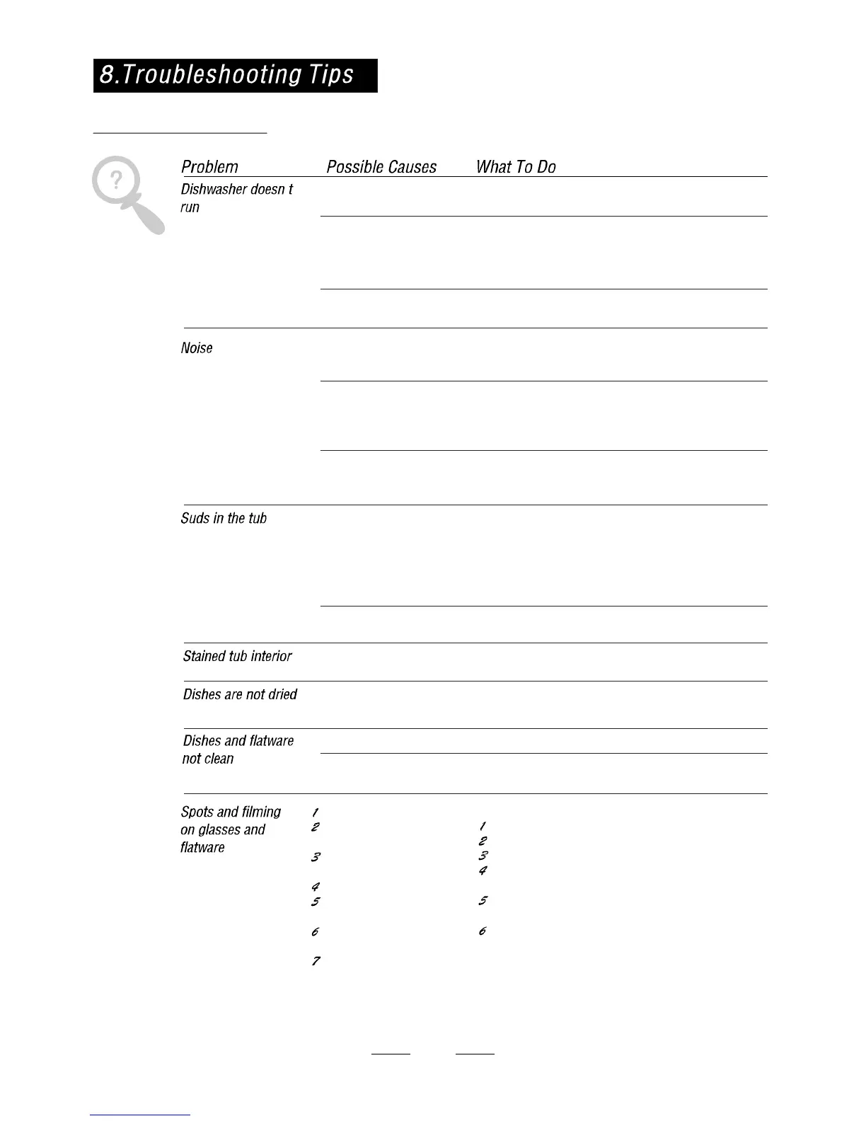 Improper rack loading Make sure that the action of the detergent dispenser and