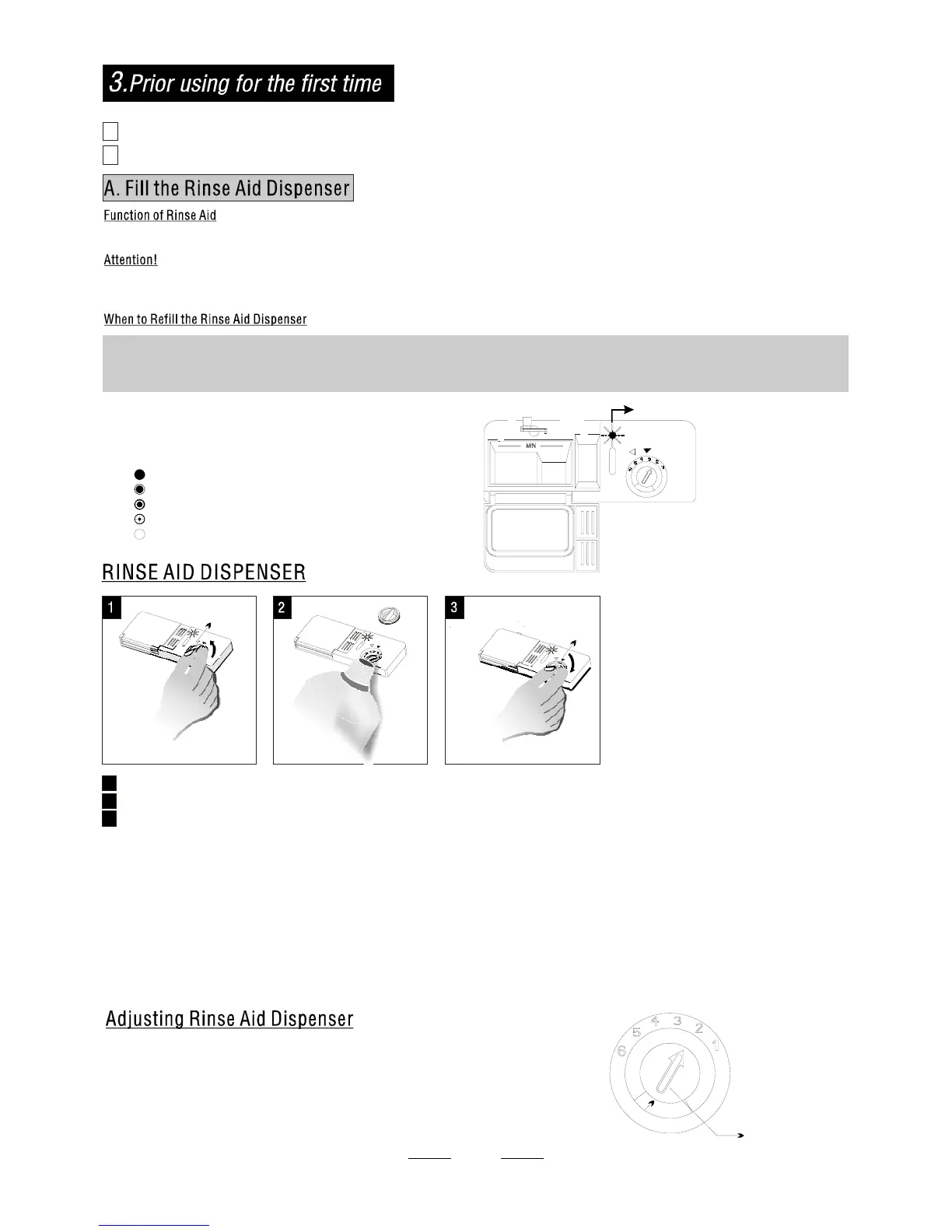 diminishes, the size of the dark dot decreases. You should never let the rinse aid get below 1 / 4 full.