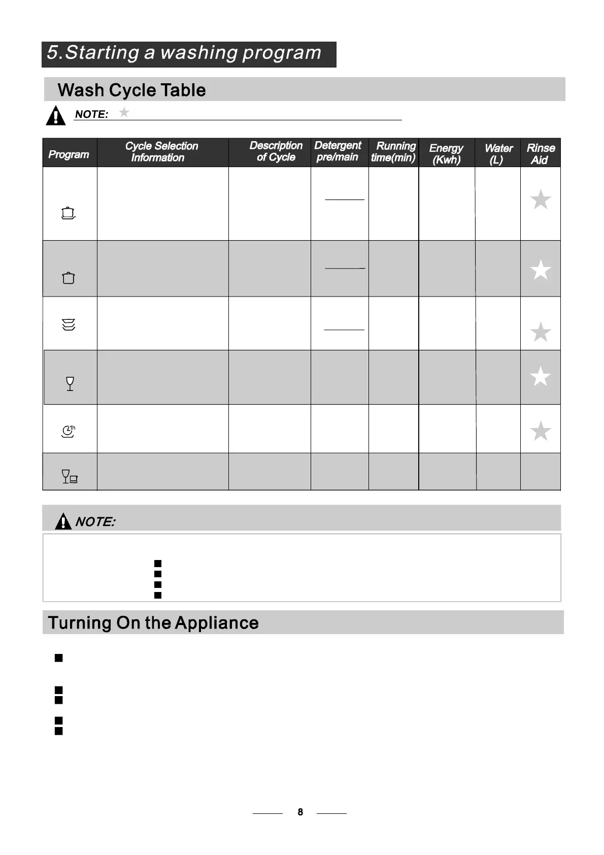 illuminated during the wash cycle. This is an energy saving feature and does not indicate a fault with