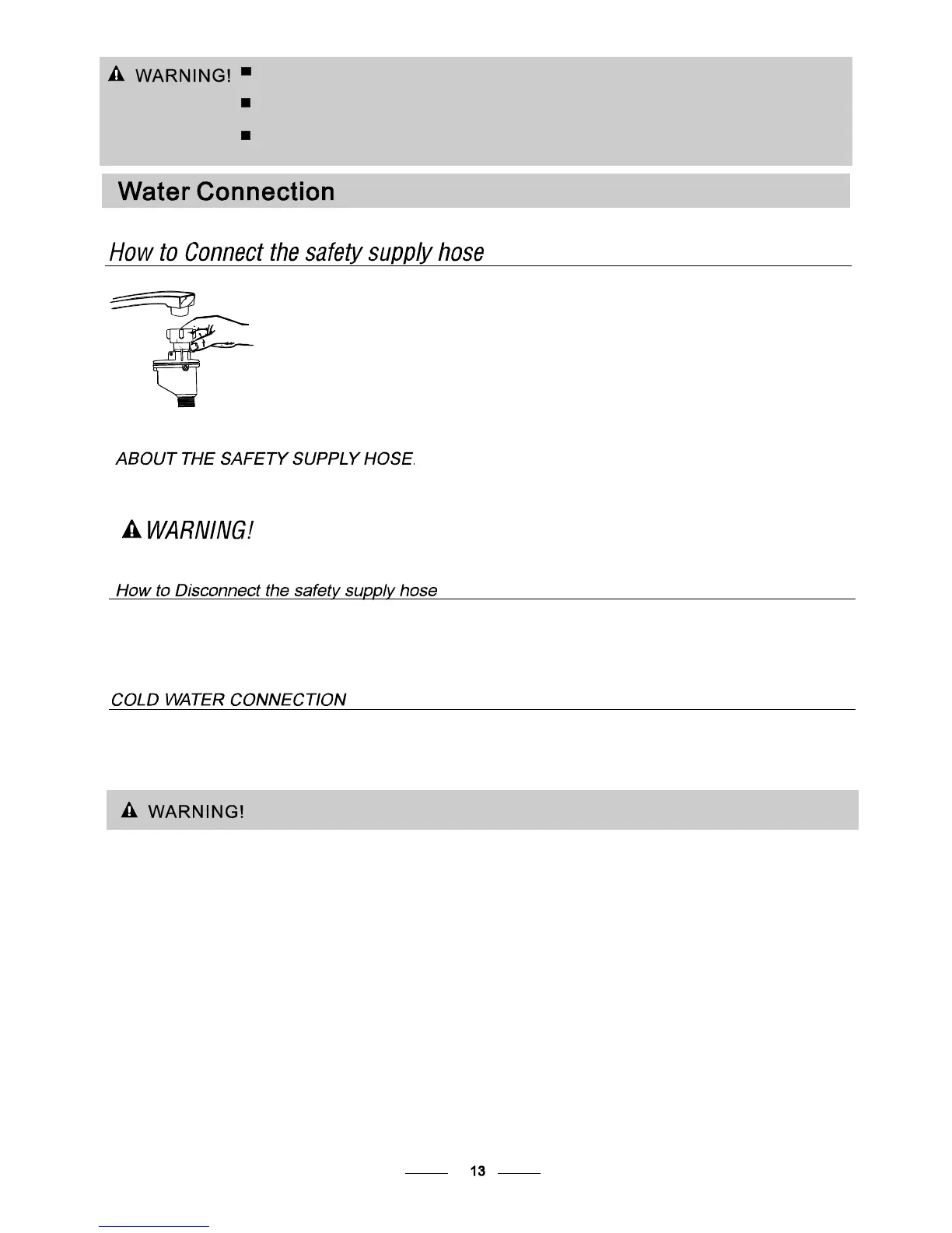 Connect the cold water supply hose to a threaded 3/4(inch) connector and make sur e that it is fastened tightly in place.