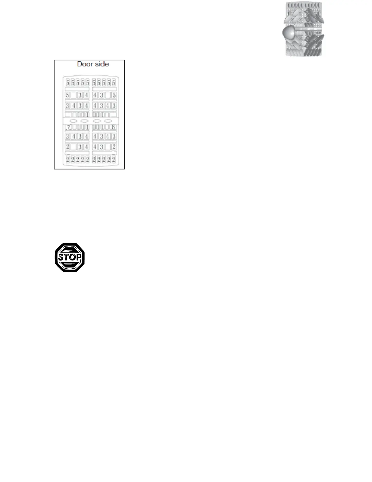 of the cutlery basket, as this may cause damage to the spray arm