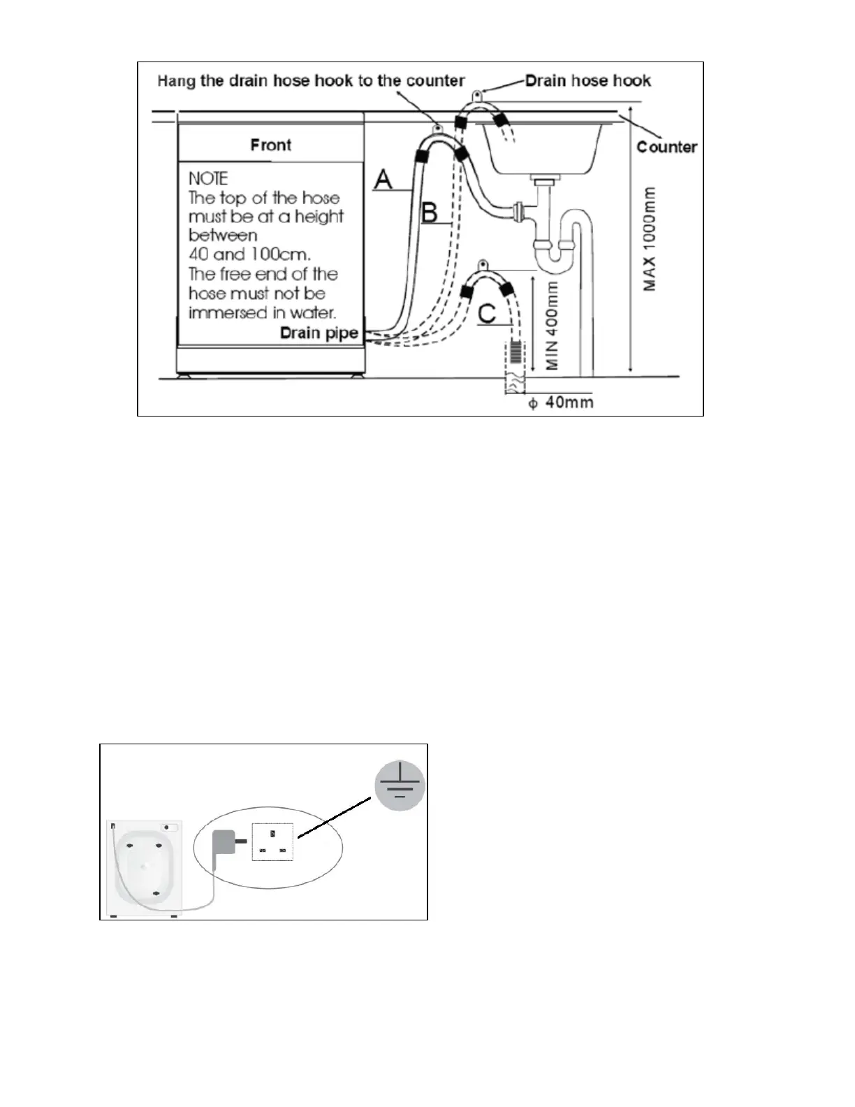o NEVER EXTEND THE DRAINAGE HOSE FROM ITS ORIGINAL