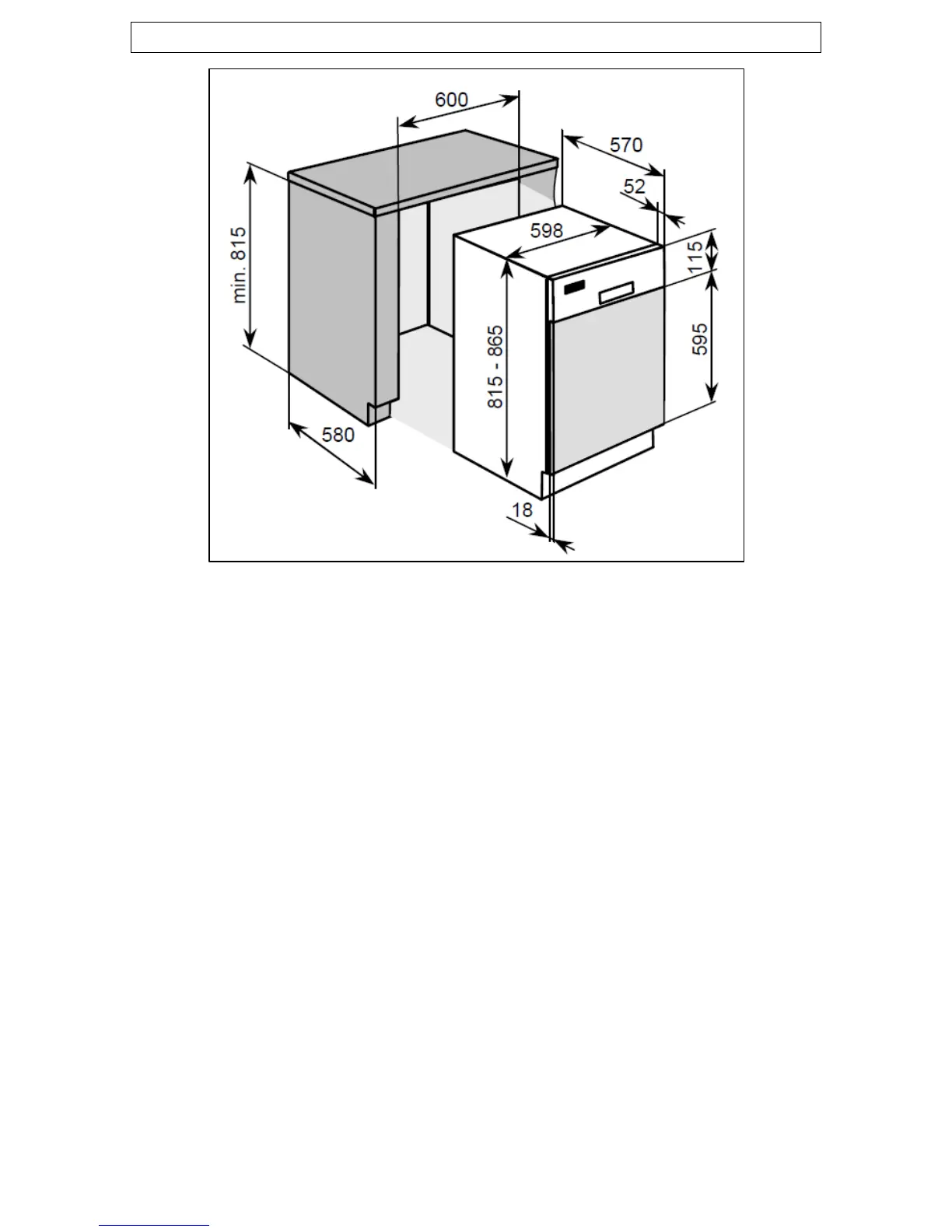 Depth: 580 mm (min)
