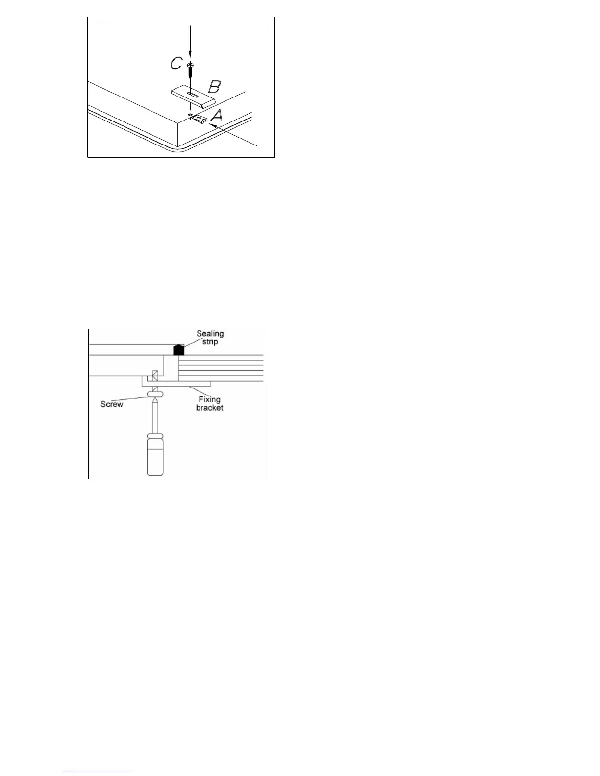place a screw (C) through the hole and fixing bracket (B).
