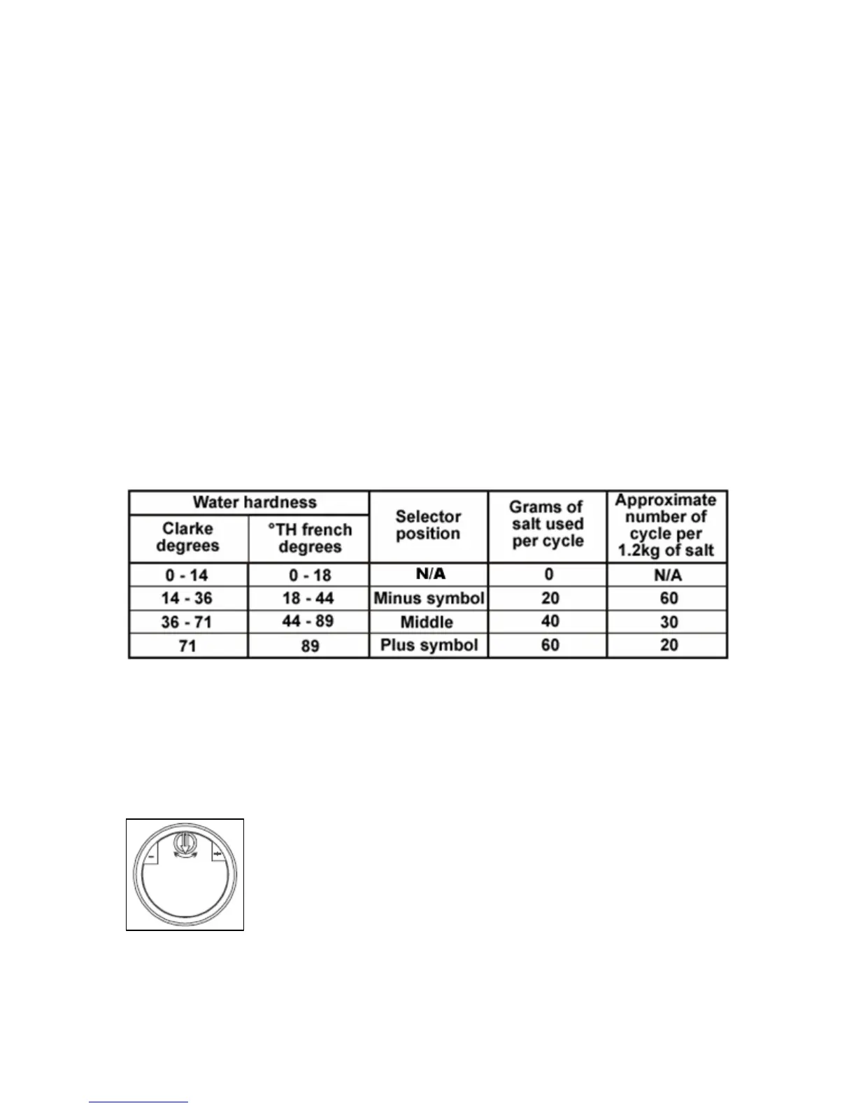 level that is appropriate for the hardness of your water (please refer to