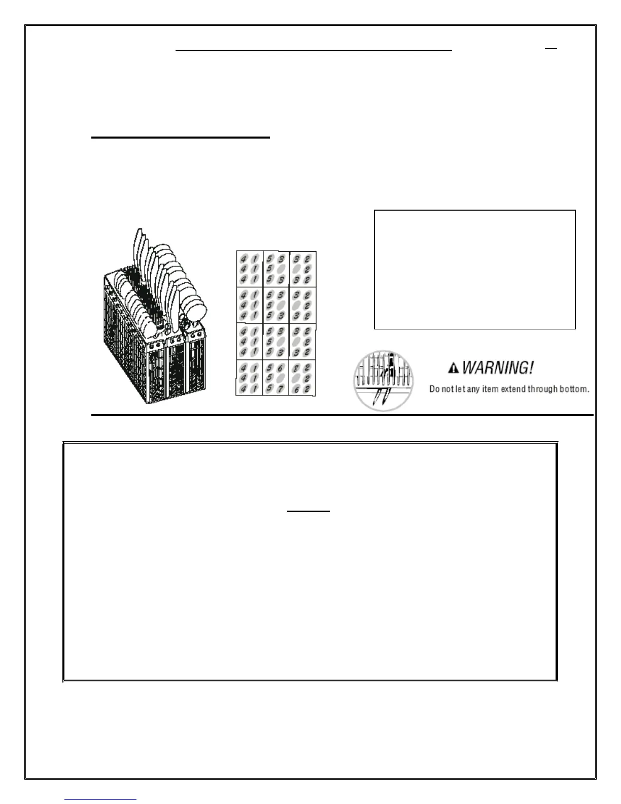 DOWNWARD (AT THE BOTTOM). VERY LONG UTENSILS (LADLES, etc.) SHOULD BE PLACED