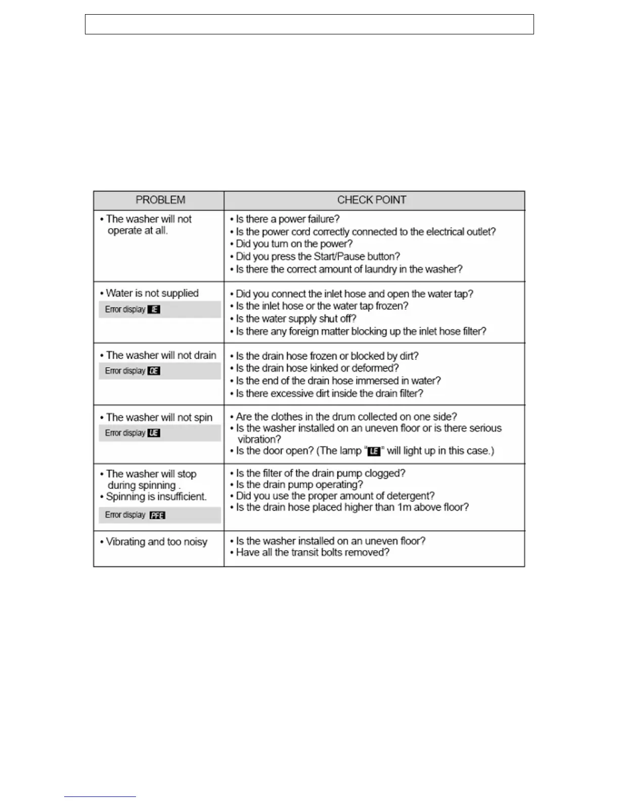 o If IE, LE, OE or UE are displayed on the LED display, you should