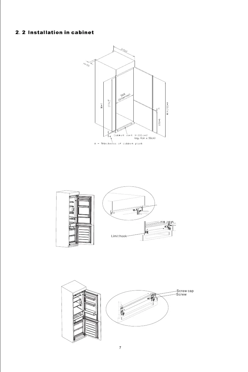 Before fixing into place, check the gap for the sealing strip between the cabinet and the refrigerator is correct.•