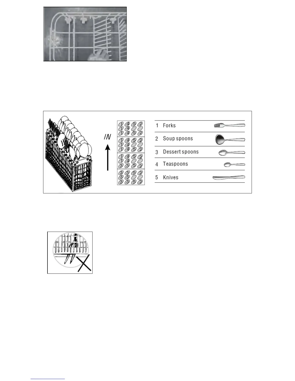 Cutlery should be placed inside of the cutlery basket. The cutlery
