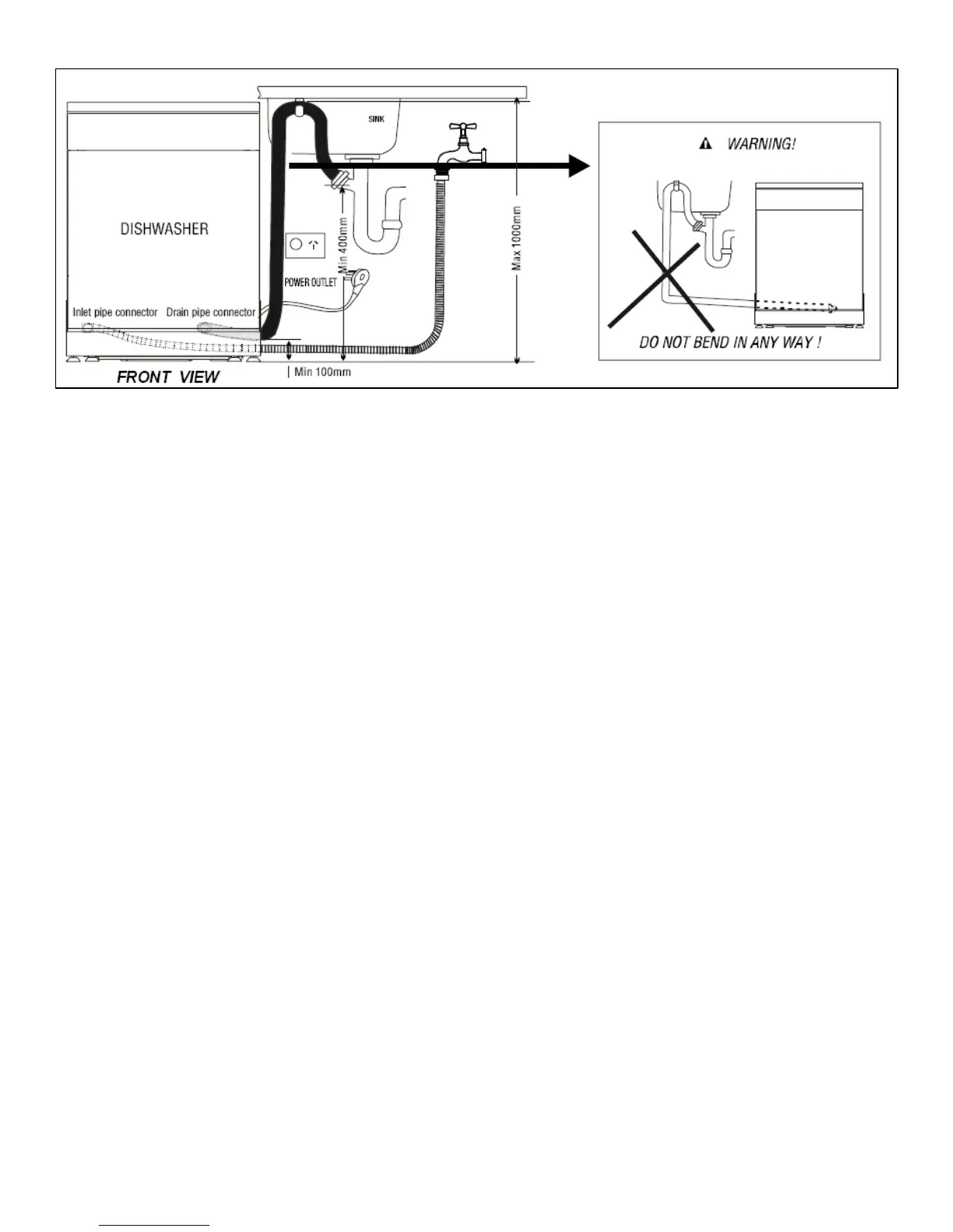 o NEVER EXTEND THE DRAINAGE HOSE FROM ITS ORIGINAL