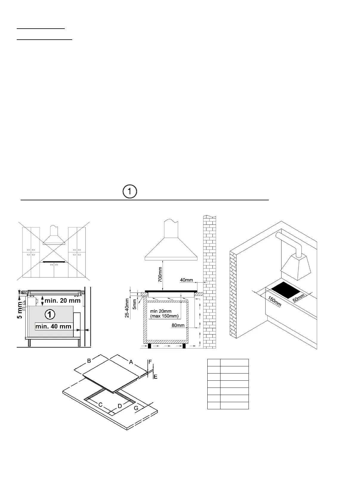 • The kitchen furniture element underneath the hob should not be fitted with a drawer. If the kitchen furniture element as a