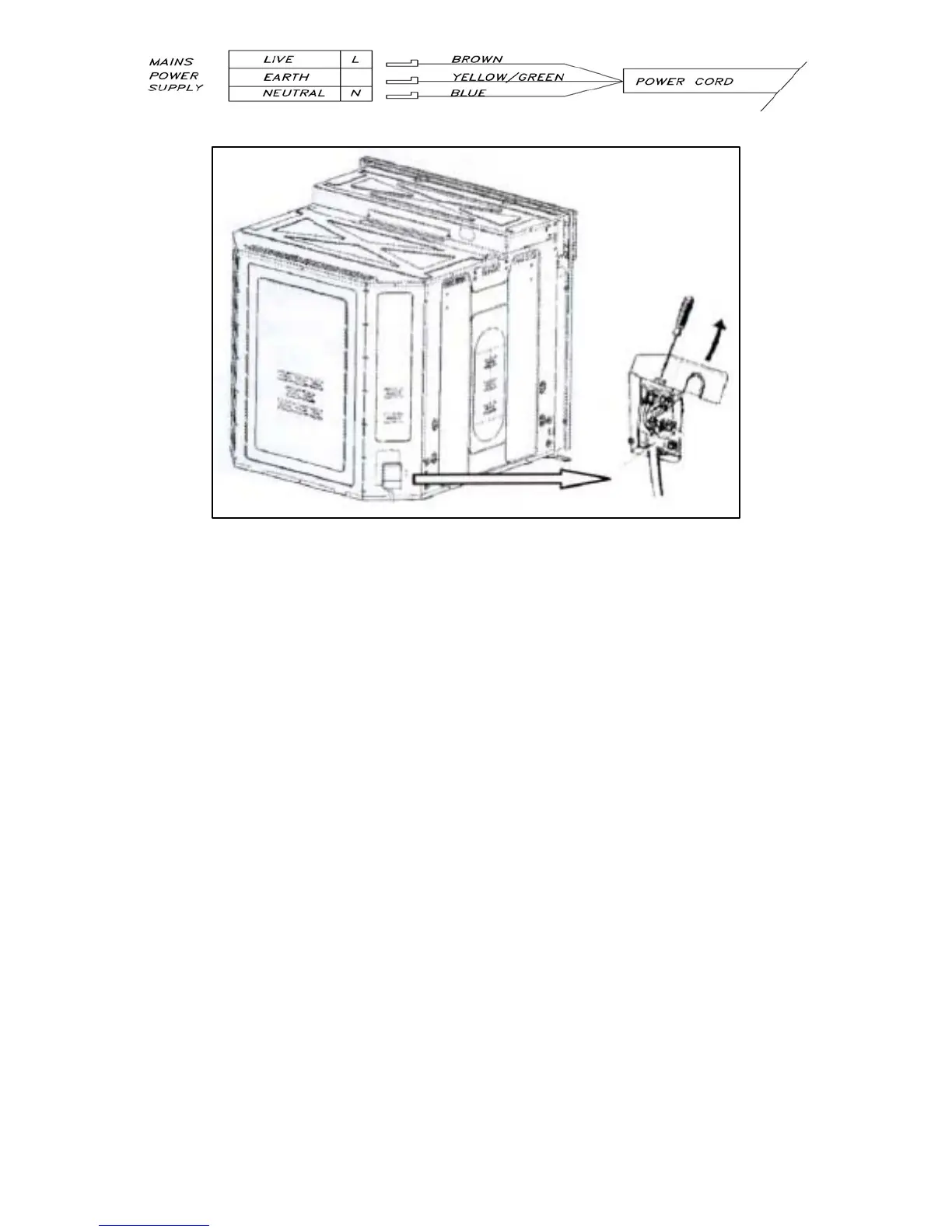o If you have to change the oven power cord, the earthing