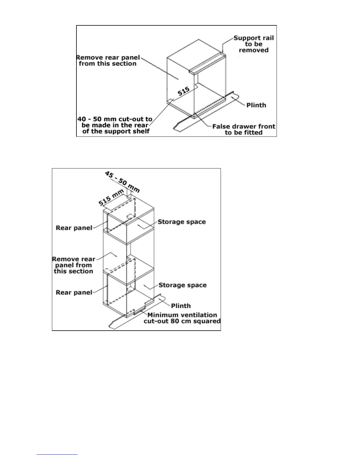 (Figure shows the ventilation and cut-out requirements for the