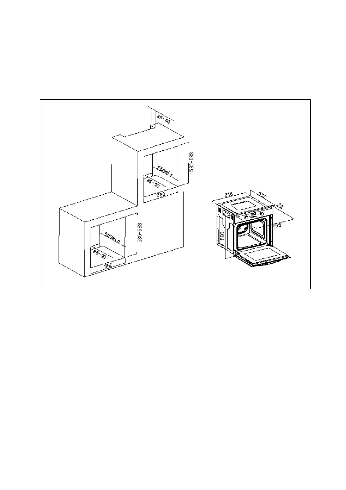 The oven must be fitted into an oven housing with the ventilation cut-outs