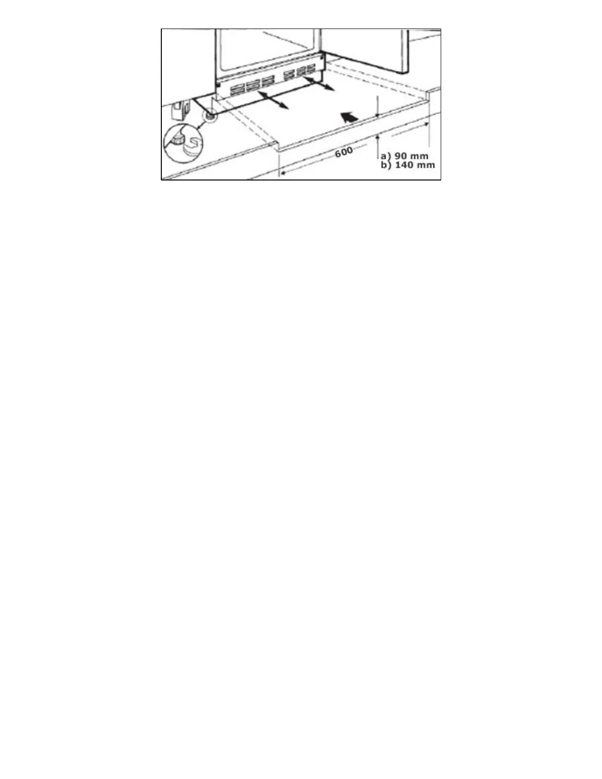 A cut out must be made in the plinth/kickboard for ventilation.