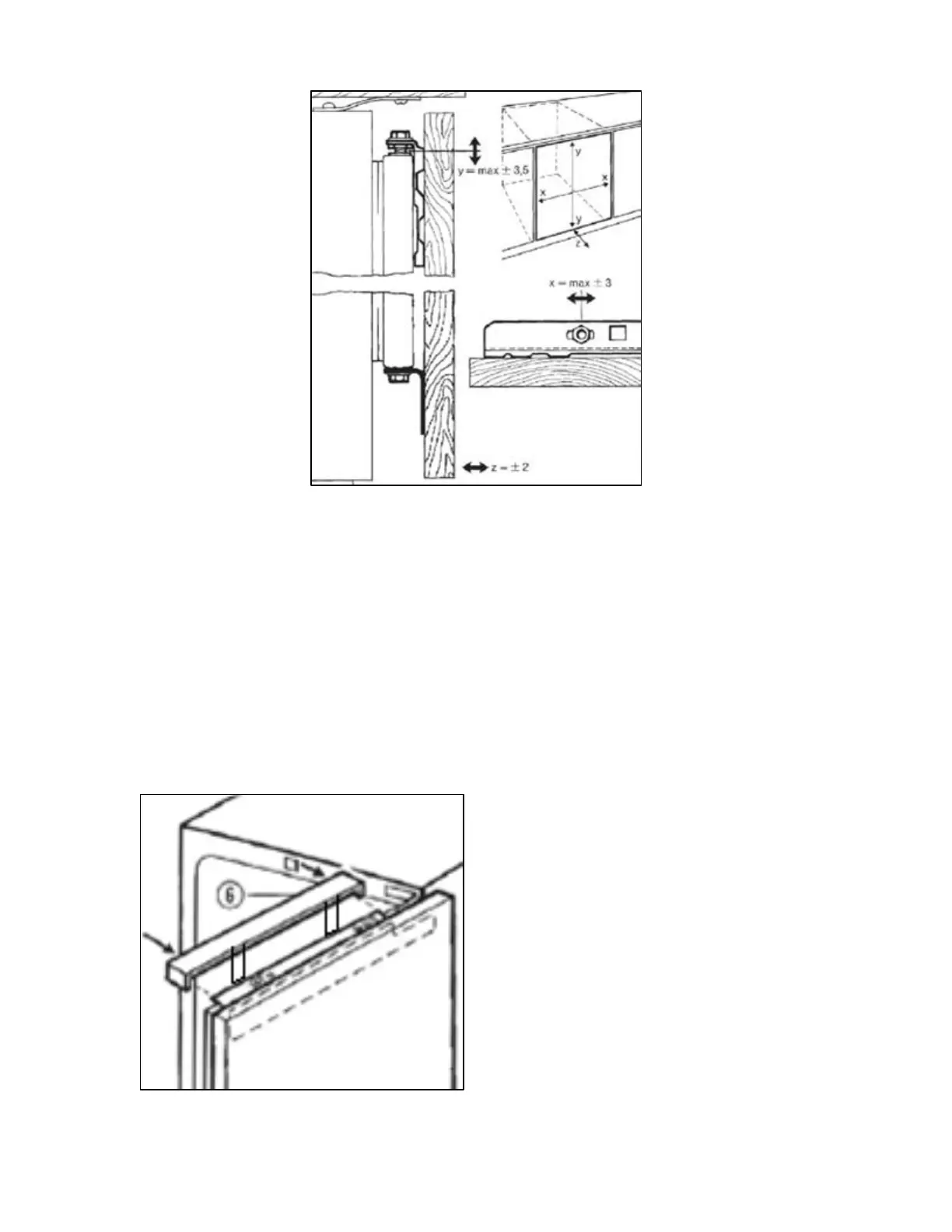 d) Fix the lower bracket to the bottom of the furniture door and the